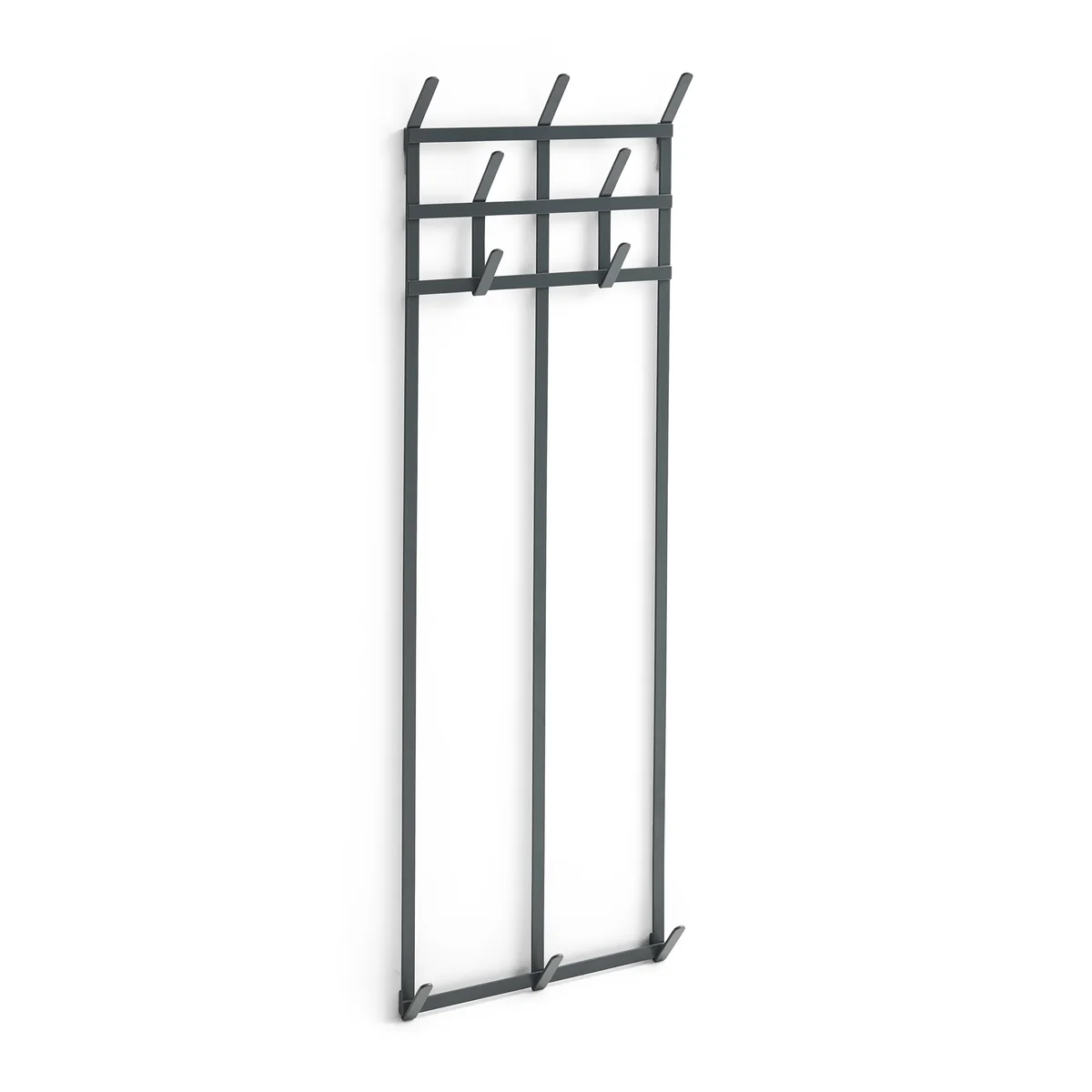 Die Tape Garderobe von BIG-GAME für HAY zeichnet sich durch ein minimalistisches und vielseitiges Design aus, bei dem die gebogenen Stahlstangen in einem Gittermuster angeordnet sind. Sie lässt sich leicht an der Wand befestigen und bietet mehrere Haken in verschiedenen Höhen für optimale Aufhängeoptionen. Das schlichte Design fügt sich nahtlos in Flure, Schlafzimmer und andere Räume im Haus ein.