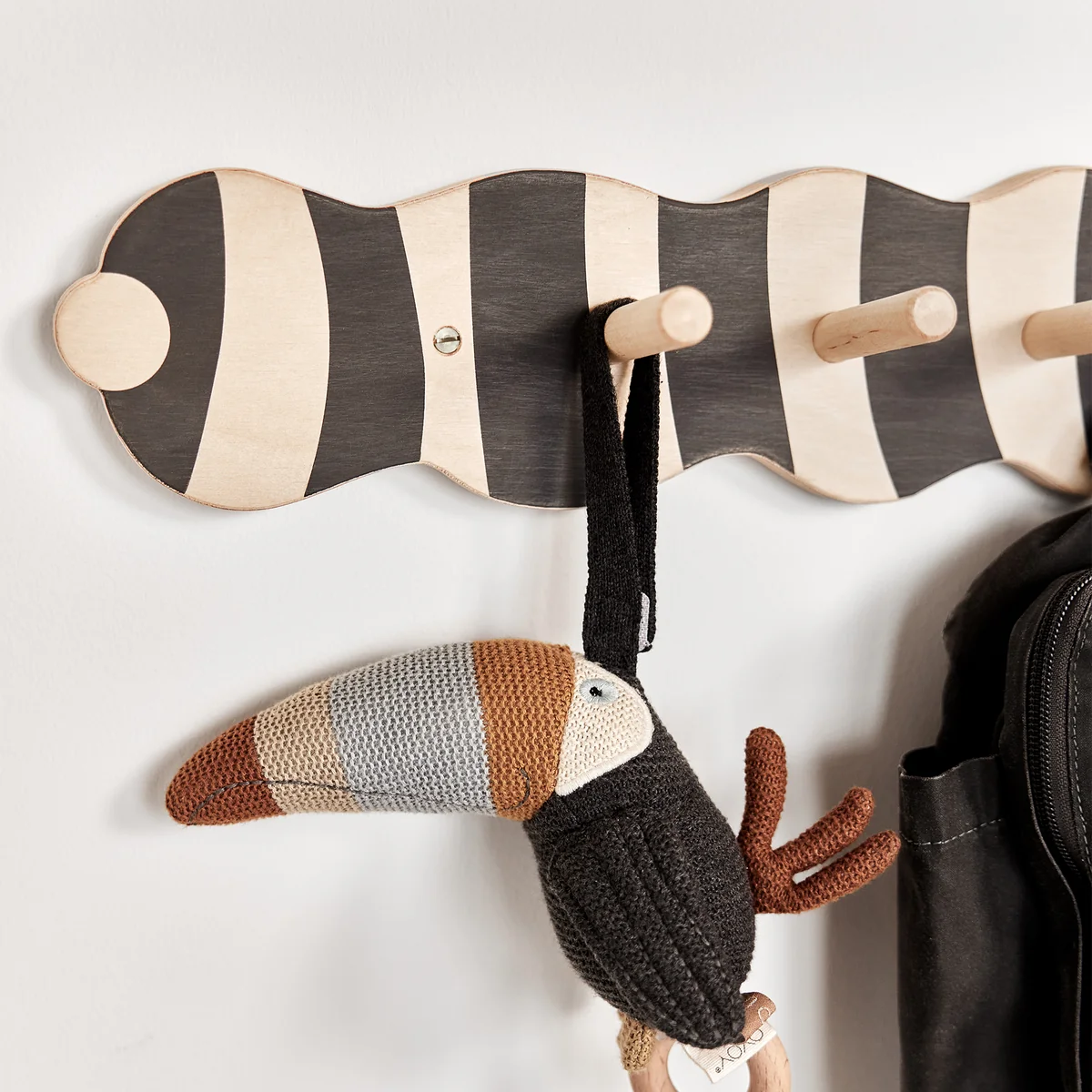 Die Larva Kleiderhakenleiste von OYOY Mini ist nicht nur verspielt, sondern auch funktional, und wurde aus natürlichen Materialien entworfen. Sie verkörpert ein fantasievolles Design und wird mit Messingschrauben geliefert, um eine einfache Montage zu ermöglichen. Durch die harmonische Verbindung von verspielter Ästhetik und Funktionalität entsteht ein einzigartiges Stück. Mit einer maximalen Tragkraft von 10 kg und 2 kg pro Haken bietet diese Kleiderhakenleiste eine ideale Balance zwischen Charme und Zweckmäßigkeit.