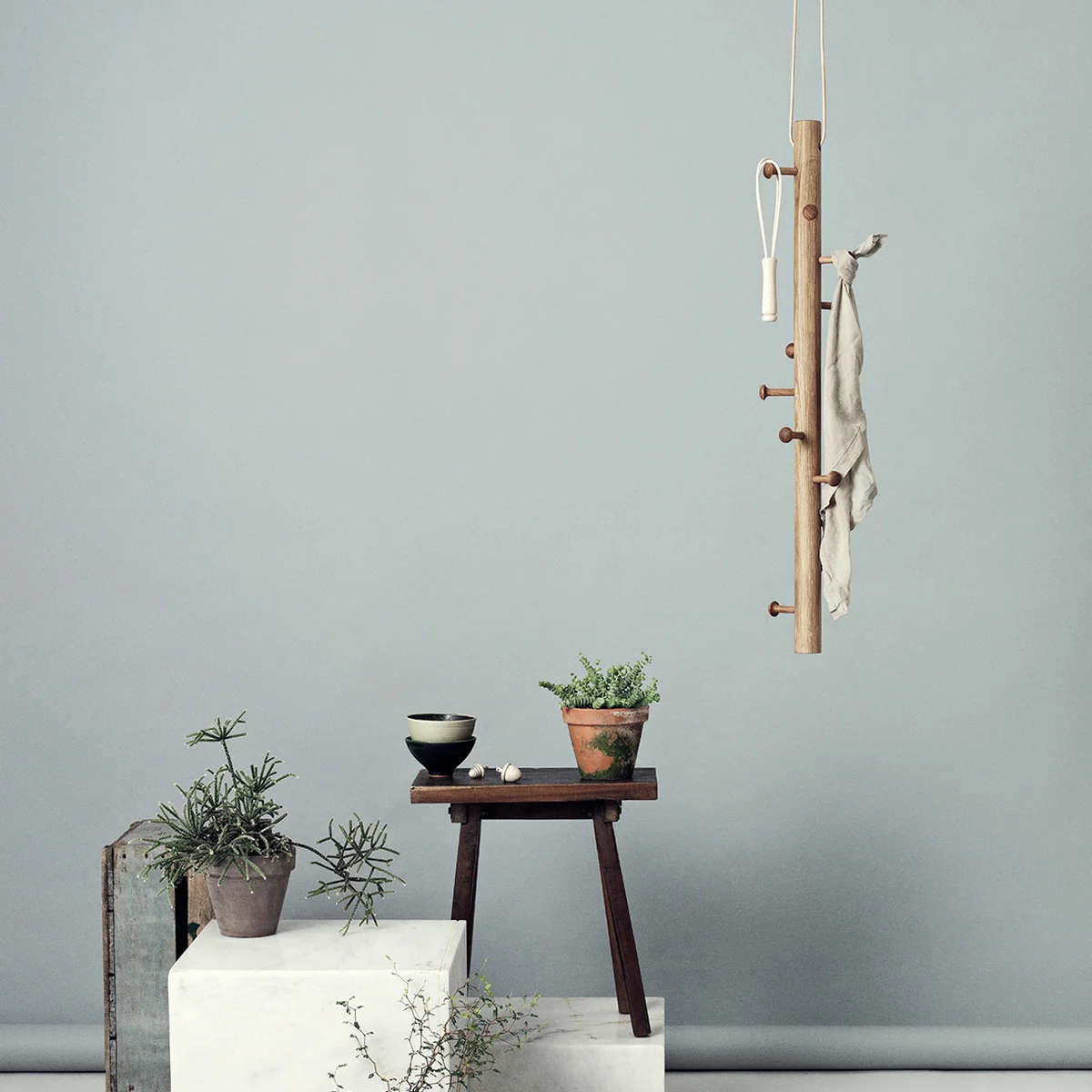 Die Copenhanger Hängegarderobe von We Do Wood bringt frische skandinavische Luft in das Zuhause: Hergestellt aus FCS-zertifiziertem Eichenholz, ist die hängende Garderobe ein Stück, das nicht so geläufig ist. Als untypisches Stück verleiht es der Einrichtung einen zeitlosen und künstlerischen Touch, der garantiert für Aufsehen sorgt. Die Garderobe wird mit einer 2 Meter Lederkordel geliefert. Die Copenhanger Hängegarderobe ist in unterschiedlichen Ausführungen erhältlich und kann nach individuellen Wünschen vielfältig kombiniert werden.