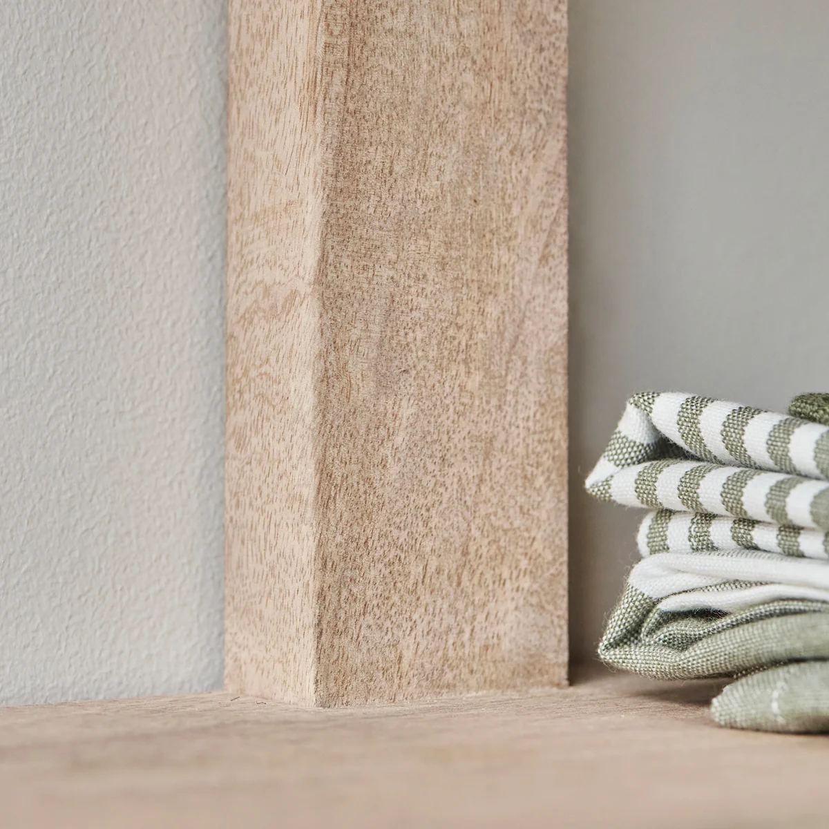 Präsentieren Sie Ihre Einrichtungsgegenstände auf praktische und moderne Weise mit den offenen Regalen von House Doctor. Dieses Design besteht aus drei Regalen, die aus Mangoholz gefertigt sind. Die zeitlose Gestaltung vereint Funktionalität und Minimalismus auf harmonische Weise. Vor allem bietet es eine wunderbare Lösung für jedes Zuhause, da es ausreichend Platz für Kerzenhalter, Schalen und Bücher bietet. Ob im Wohnzimmer, Schlafzimmer oder in der Küche - diese Regale ermöglichen es Ihnen, mit Ihren Lieblingsstücken einen persönlichen Ausdruck zu gestalten. Verfügbar in natürlicher oder schwarzer Ausführung, bieten sie eine vielseitige Ergänzung für jede Einrichtung.