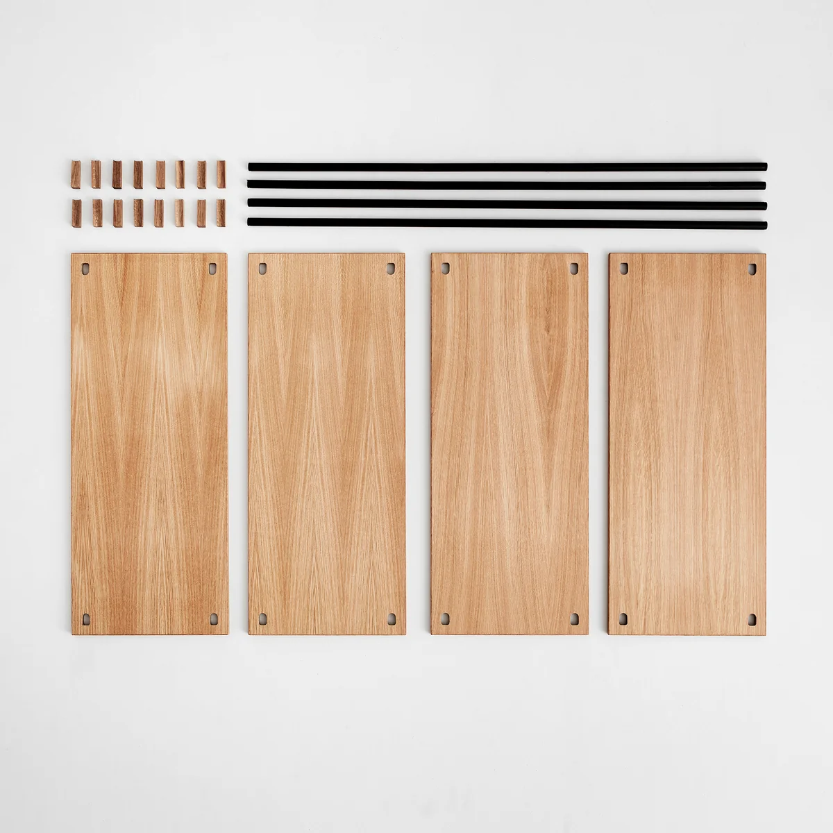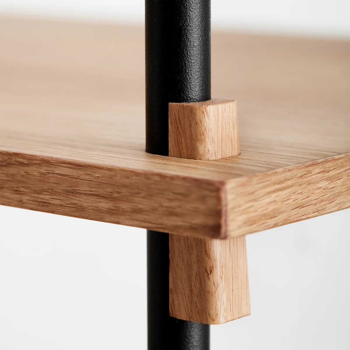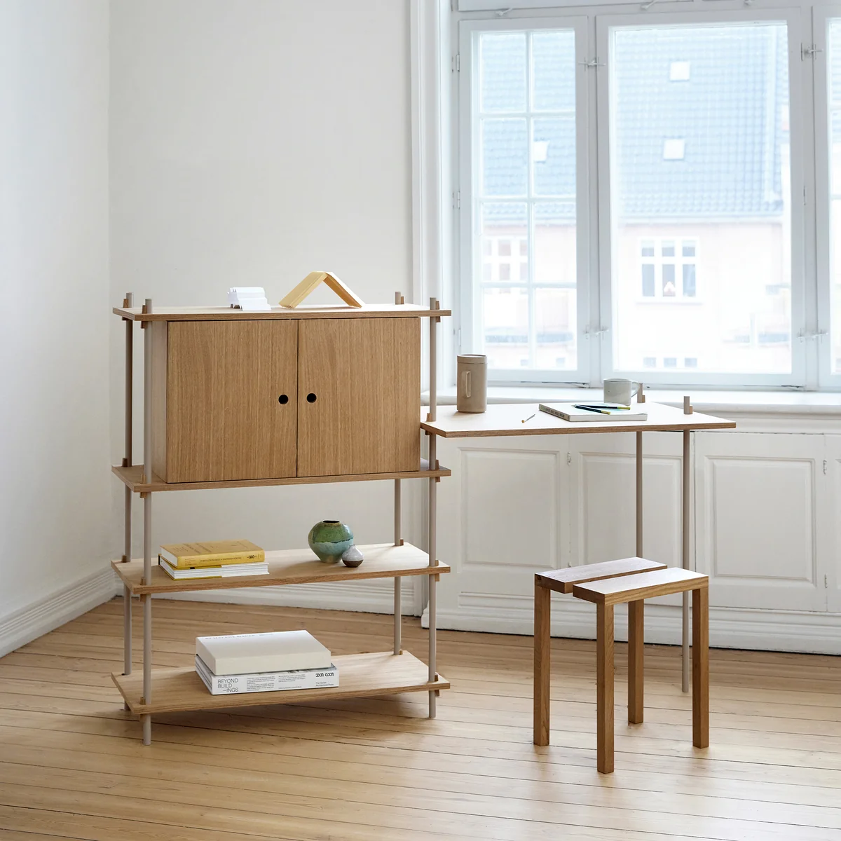 Das Shelving System von Moebe ist ein erweiterbares Regalsystem, das ganz ohne Schrauben und Kleben auskommt. Das Konzept basiert auf einfachen, intelligenten Verbindungen in Keilform, die die einzelnen Elemente zuverlässig zusammenhalten, ohne dass Werkzeug benötigt wird. Darüber hinaus bietet die Verwendung von Keilen als Verbindungsstück dem Benutzer die volle Freiheit, das Regal nach den eigenen Wünschen zu gestalten, die Böden in einer beliebigen Position zu platzieren und sie an die spezifischen Bedürfnisse anzupassen.