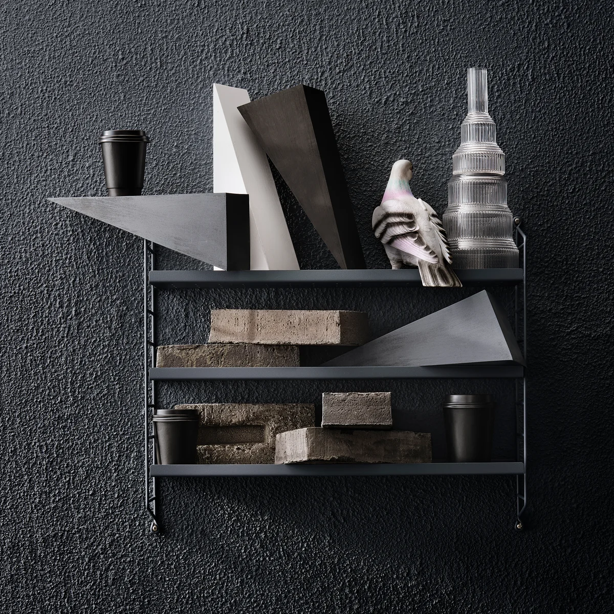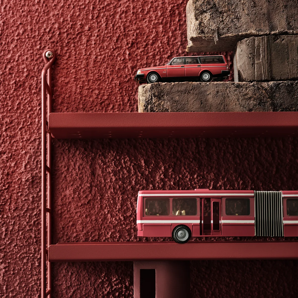 Das String Pocket Regal lässt sich mit anderen Regalen kombinieren und sowohl nach oben als auch zur Seite ausbauen. Bodenleitern sind für dieses Regal nicht erhältlich. Im Lieferumfang enthalten sind zwei Seitenelemente zur Wandmontage und drei passende Fachböden.