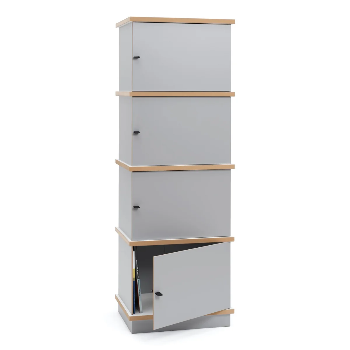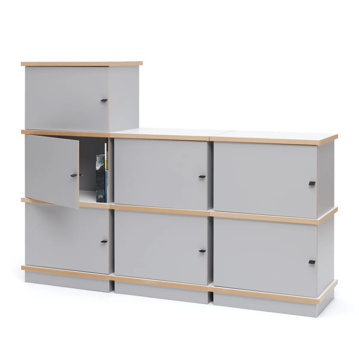 Das Tojo-Stap ist ein modulares Boxensystem von dem Designstudio eigenwert, dessen Boxenelemente sich einfach kombinieren lassen. Die Seitenwände mit der Tür werden aufgefaltet und in die Nut der Zwischenböden gesteckt, sodass der Aufbau des modularen Regal-Systems ganz ohne Schrauben auskommt.