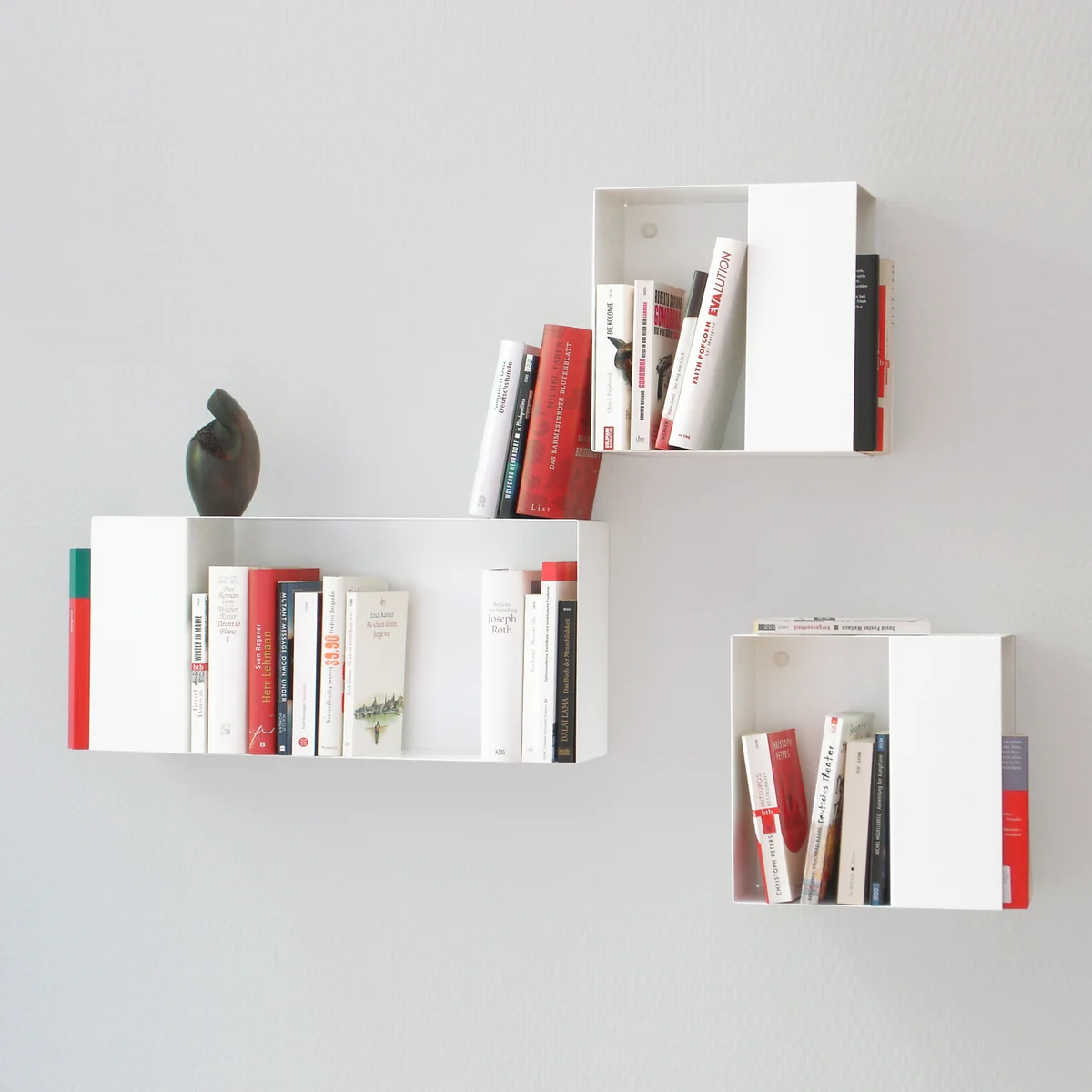 Gestalten Sie Ihre ganz individuelle Bücherwand - denn außergewöhnliche Bücher haben auch einen außergewöhnlichen Stellplatz verdient. Das klassische Bücherregal hat ausgedient, stattdessen lassen sich die einzelnen Elemente der Box Bücherregal-Serie von vonbox flexibel zu einer ganzen Bücherwand zusammenstellen.