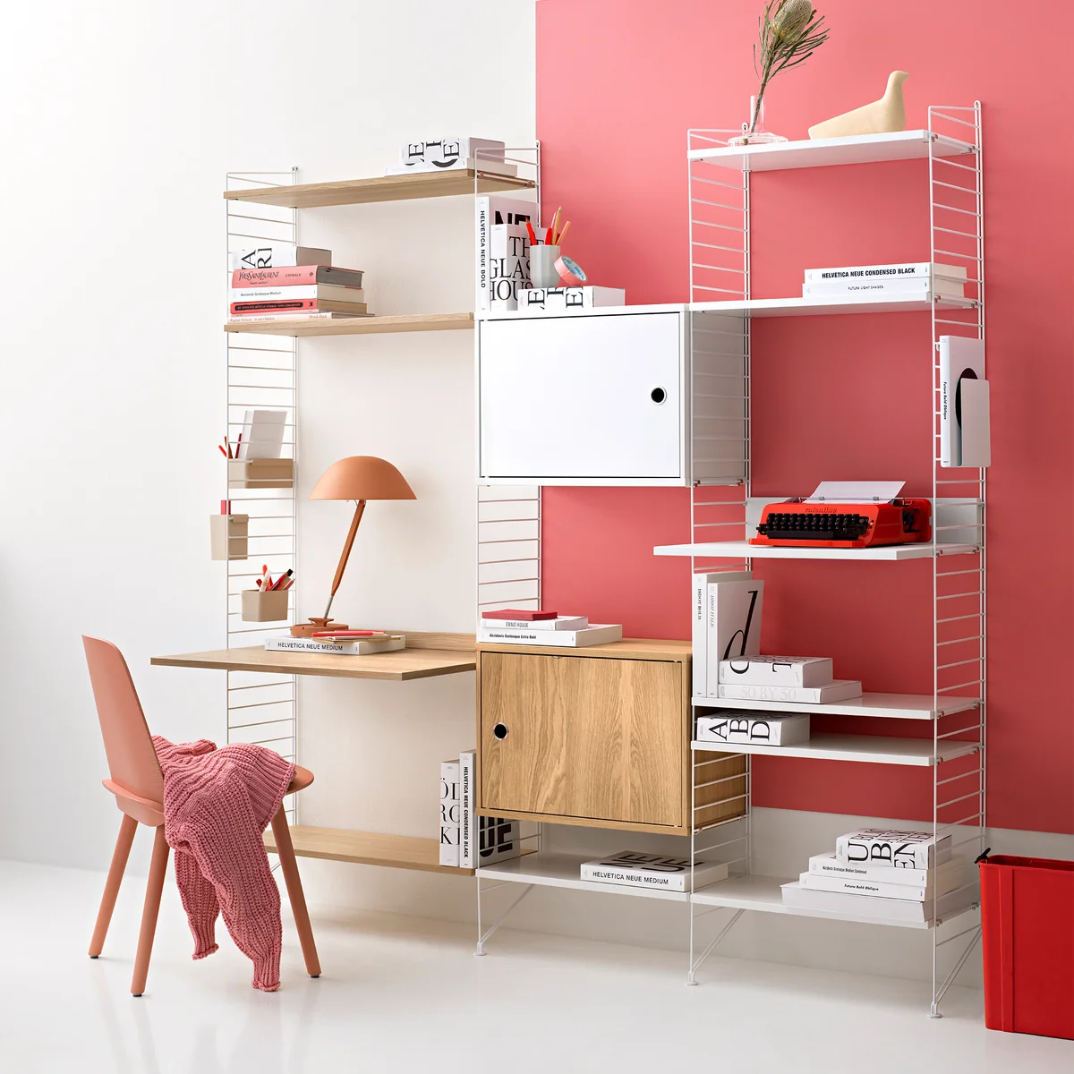 Das Schrankmodul mit Tür von String ist ein stylisches Hängekabinett mit verschließbarer Tür, das sich als Modul hervorragend ins Pocket Wandregalsystem integrieren lässt. Mit seinen vielen Farben und dem universellen Design ist es für jedes Zimmer und jeden Zweck hervorragend geeignet: Ob im Schlafzimmer, für Kleidung, als Küchenschrank, im Badezimmer oder dem Wohnzimmer.