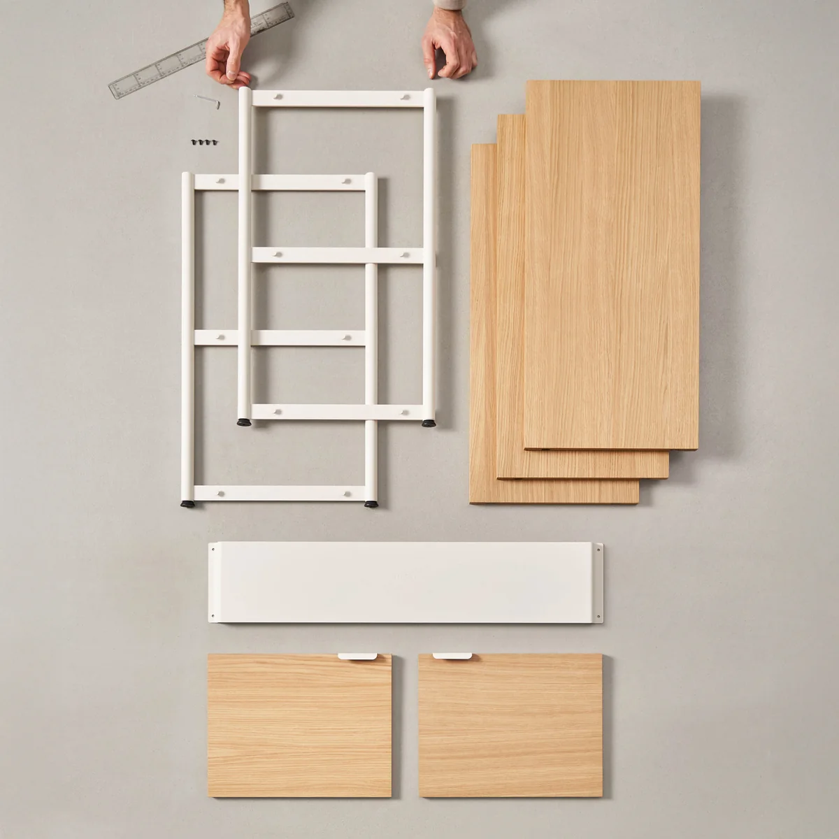 Das Unit Regalsystem ist ideal für alle, die einen flexiblen und modernen Stauraum suchen, der gleichzeitig einen stilvollen Akzent setzt. Es eignet sich perfekt für Wohnzimmer, Büros oder kreative Arbeitsräume und hilft Ordnung zu schaffen, ohne dabei auf Design zu verzichten. Mit diesem Regalsystem bringst man nicht nur Struktur in einen Raum, sondern auch ein elegantes Möbelstück, das sich durch seine Vielseitigkeit und zeitlose Schönheit auszeichnet.