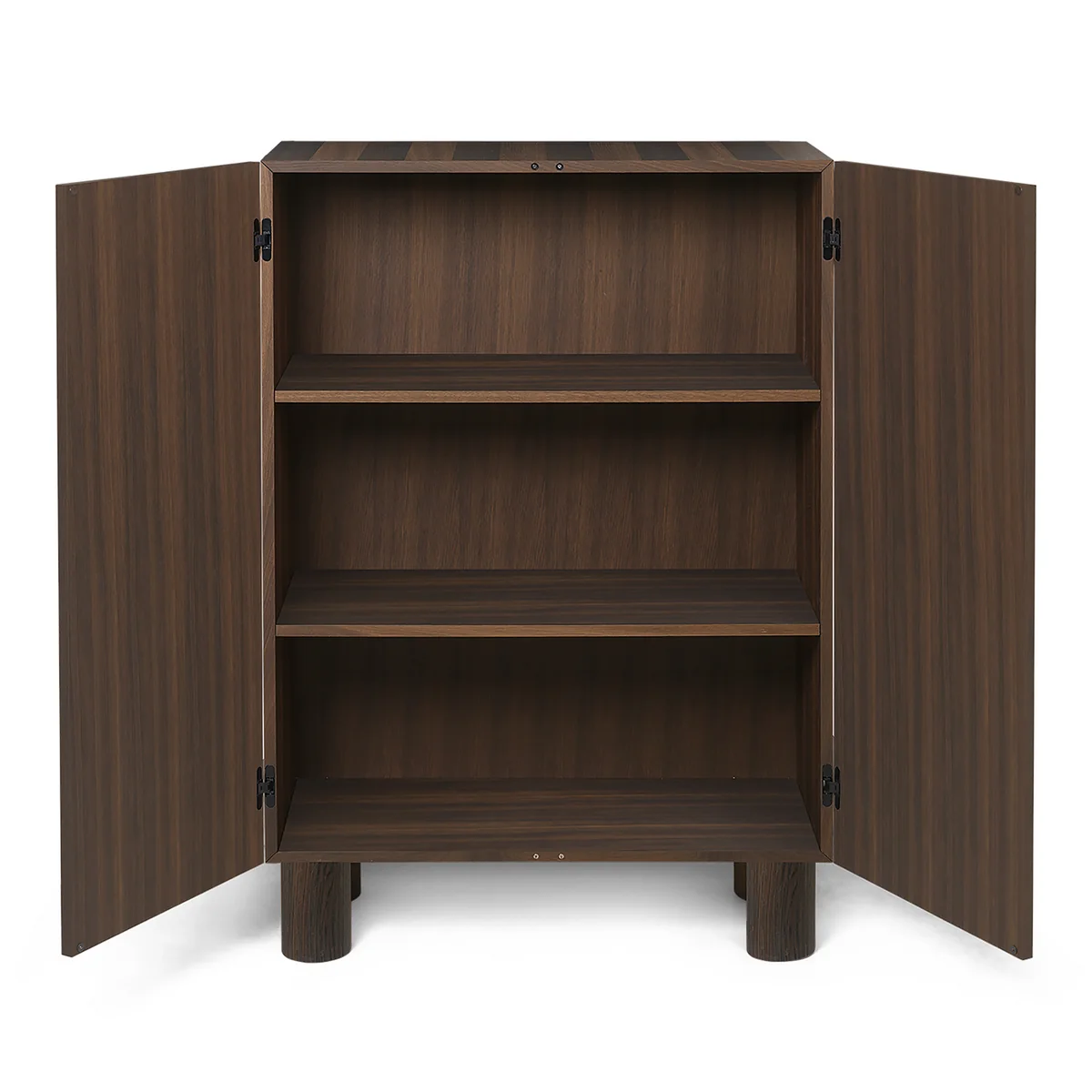 Der Post Aufbewahrungsschrank von Ferm Living zeichnet sich durch seine brutalistischen Tendenzen aus und schafft eine bemerkenswerte Aufbewahrungslösung mit aufwendigen Details, die optisch in ihren Bann ziehen.