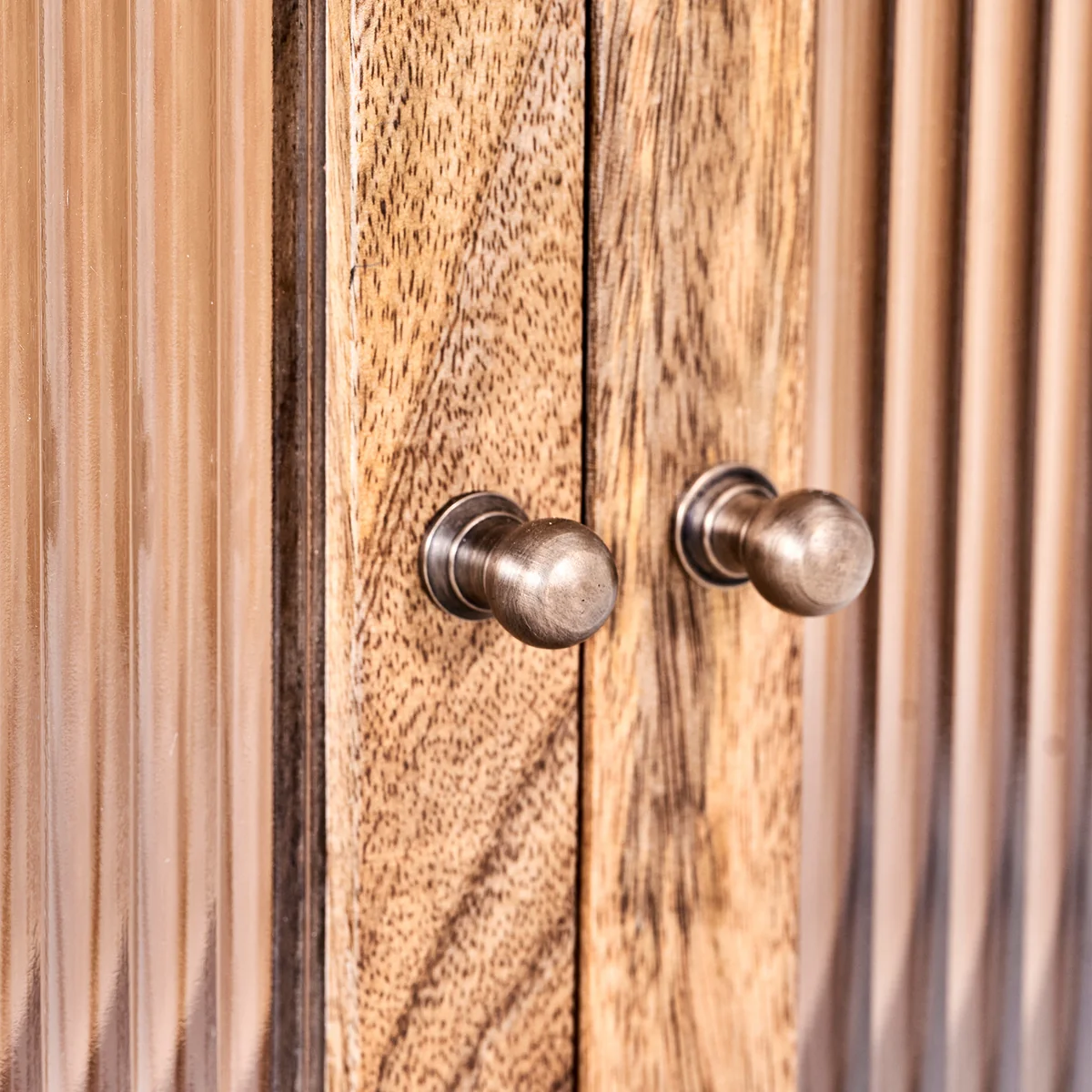 Das Balance Wandregal ist ein stilvolles Möbelstück, das Handwerkskunst und zeitlose Ästhetik vereint. Gefertigt aus hochwertigem Mangoholz, bietet dieses Regal nicht nur Funktionalität, sondern auch eine elegante Präsentationsfläche. Die Glasfront verleiht dem Regal Offenheit und Leichtigkeit, während die antik braune Oberfläche und die gerillten Seitenteile für einen charmanten, klassischen Look sorgen.