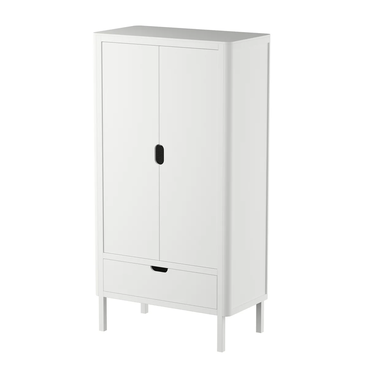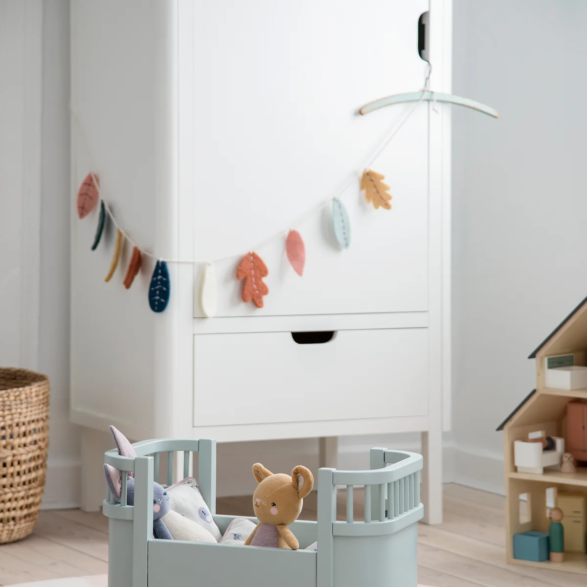 Zusätzliche Features wie Schubladendämpfer, abgerundete Ecken sowie schraubenlos höhenverstellbare Stangen und Regalböden machen diesen Schrank von Sebra zum perfekten Möbelstück jedes Kinderzimmers.