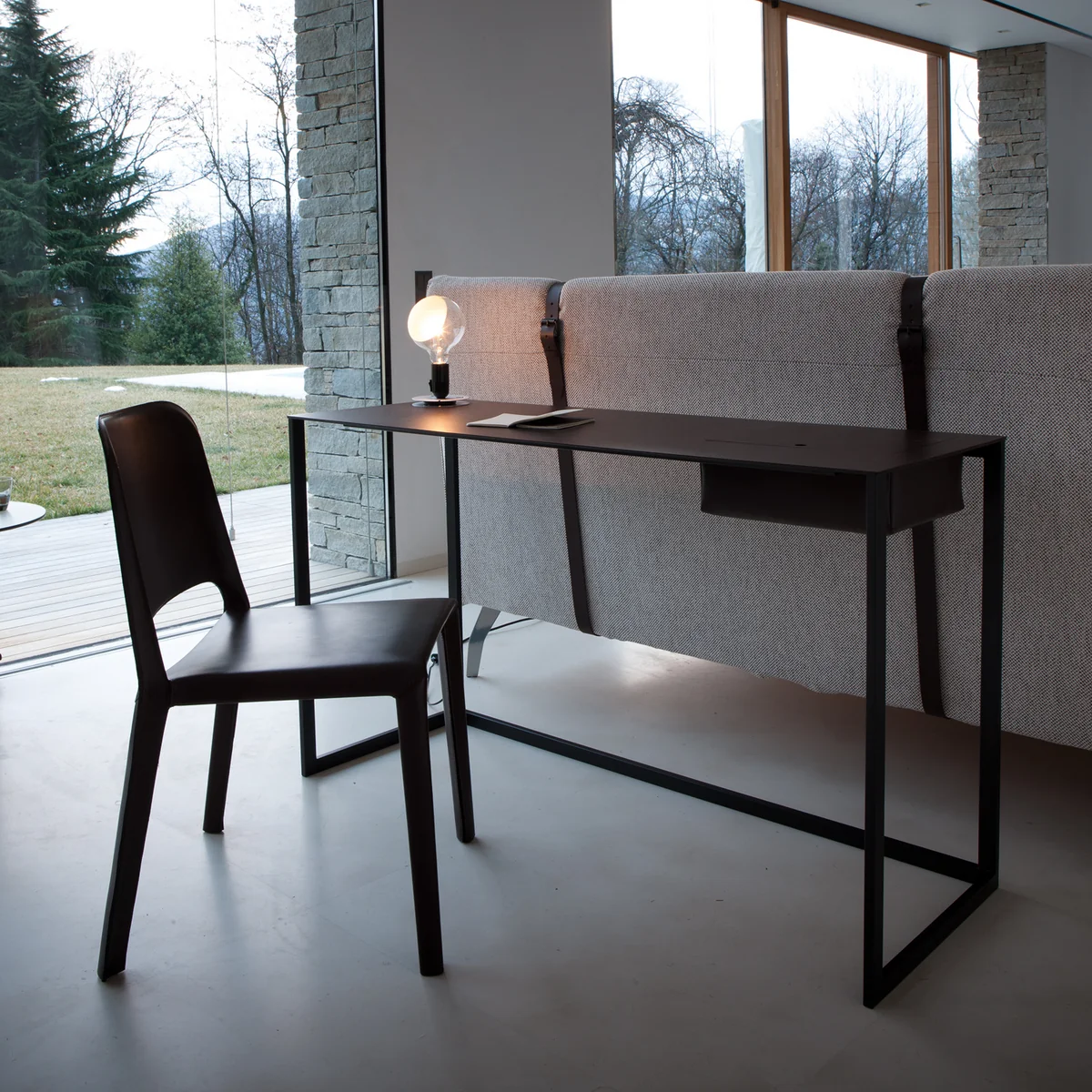 Zanotta - Calamo Schreibtisch, Stahl schwarz / Leder schwarz