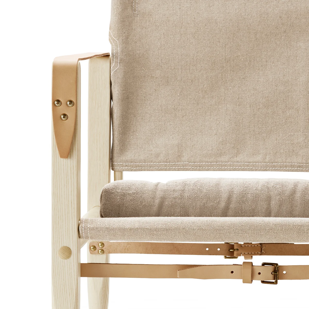 Neben seinen praktischen Vorzügen zeichnet sich der Safari Chair vor allem durch seine natürlichen Materialien aus. Während das Grundgerüst aus Eschenholz gefertigt ist, besteht die Bespannung aus Canvas Stoff. Besondere Akzente werden durch die Ledergurte und Applikationen gesetzt. So entsteht ein Möbelstück, das in jedem Ambiente für einen Blickfang sorgt und -wie der Name bereits nahelegt- an abenteuerliche Safari-Touren erinnert.