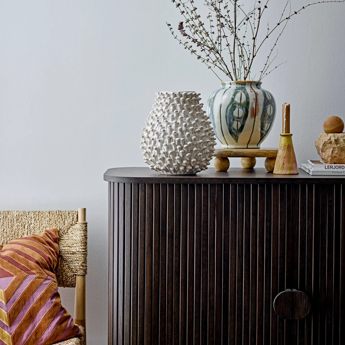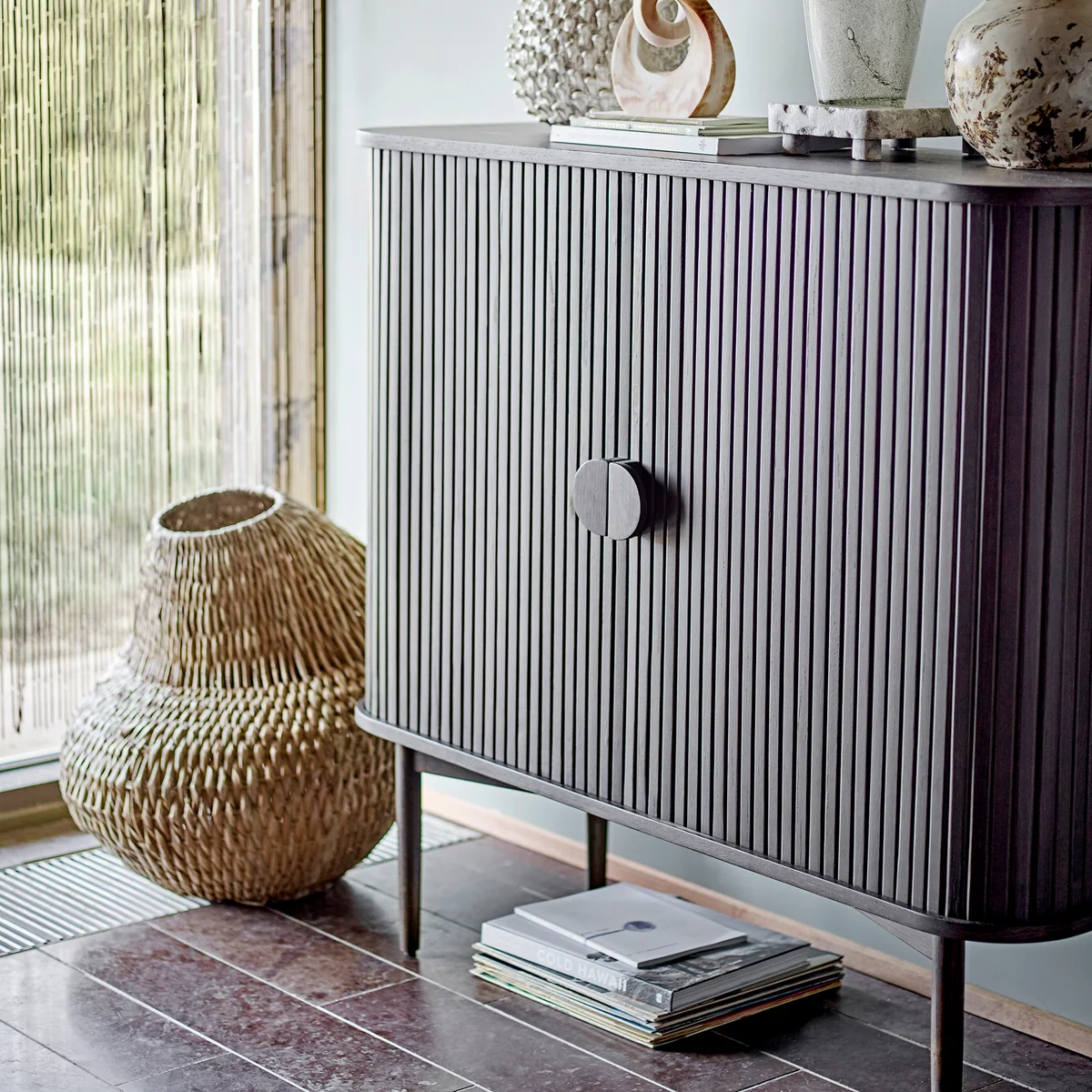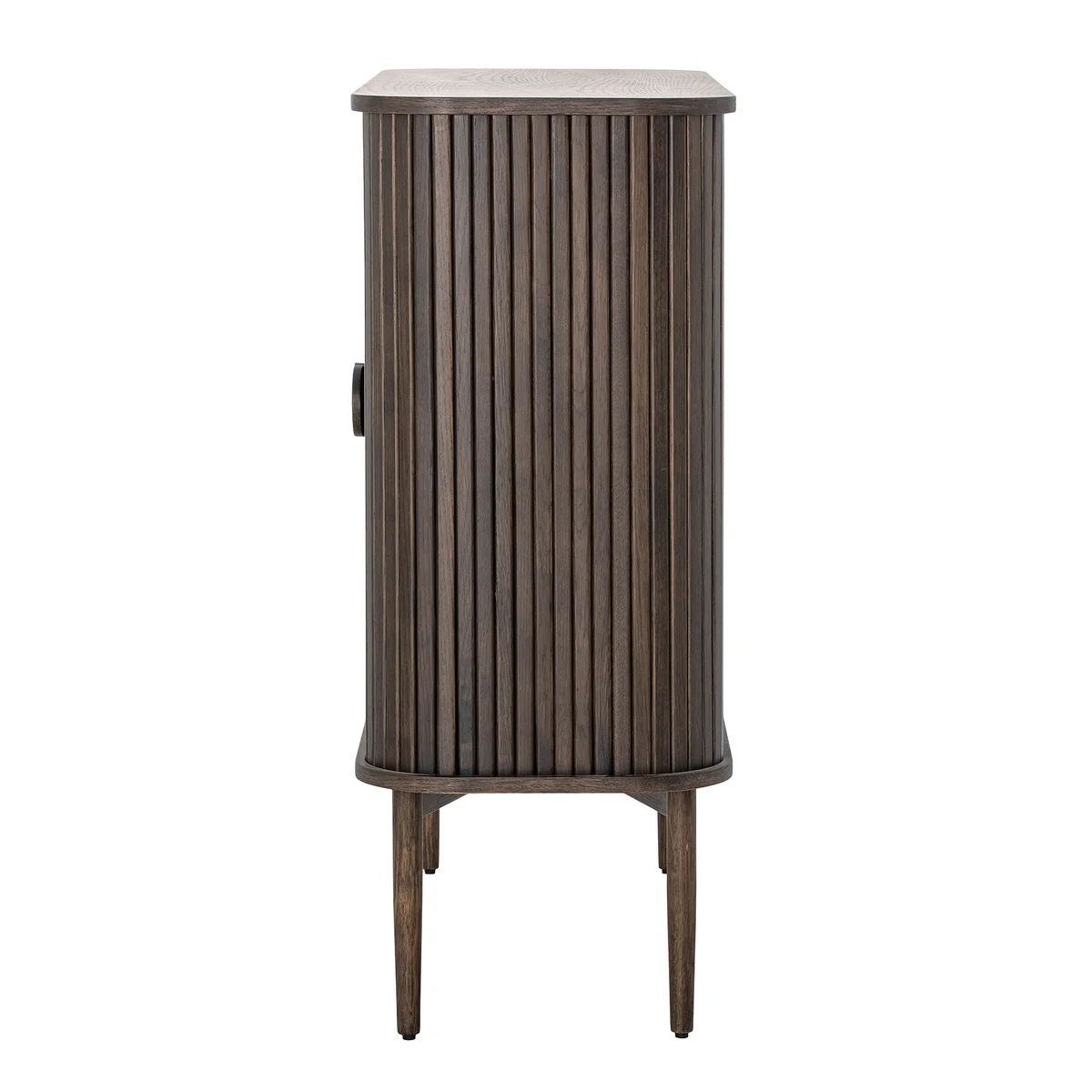 Die Valencia Kommode von Bloomingville hat ein einfaches, nordisches und klassisches Design und ist aus geräuchertem dunkelbraunem Eichenholz gefertigt. Die Kommode verfügt über Schiebetüren im Lamellen-Look und abgerundete Griffe. Sie ist perfekt geeignet, um Gegenstände zu verstauen und gleichzeitig Stil in den Raum zu bringen.