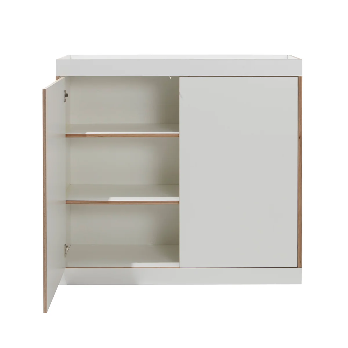 Die Flai Kommode von Müller Small Living ist in Weiß oder Anthrazit erhältlich sowie wahlweise mit Schubladen oder Türen.