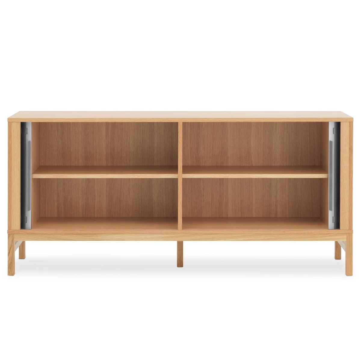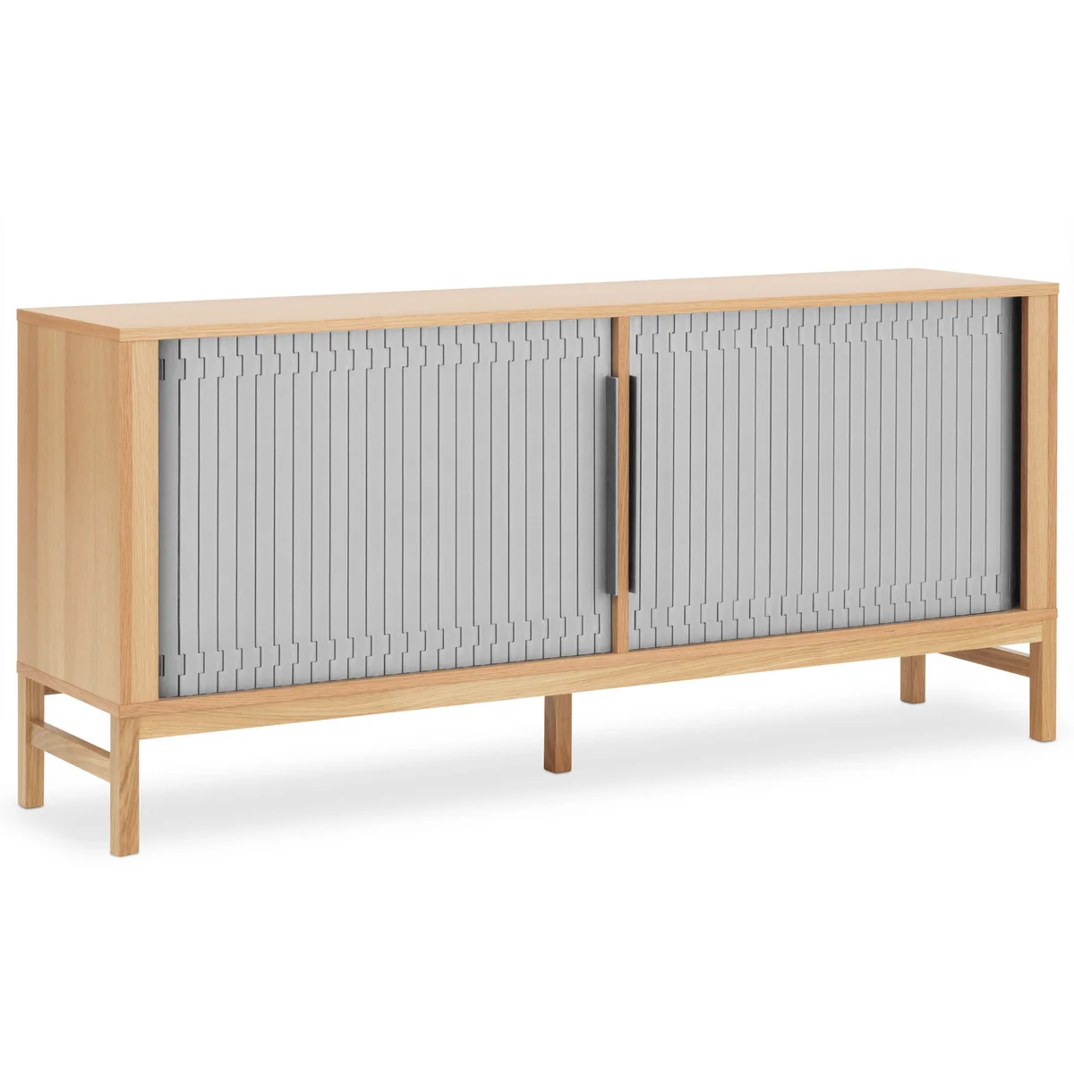 Das Jalousi Sideboard von Normann Copenhagen ist eine moderne Version der klassischen Schränke mir Schiebetüren, die sich so oft in Büros und Arbeitszimmern finden lassen. Das Jalousi Sideboard ist so weit überarbeitet, dass es sich auch im Wohnbereich gut macht und dabei nichts an den praktischen Vorzügen der Rollschränke verloren hat. Das Design stammt von Simon Legald, der sich für die Jalousi Serie von Armbanduhren, Förderbändern und 50er-Jahre-Möbel inspirieren ließ.