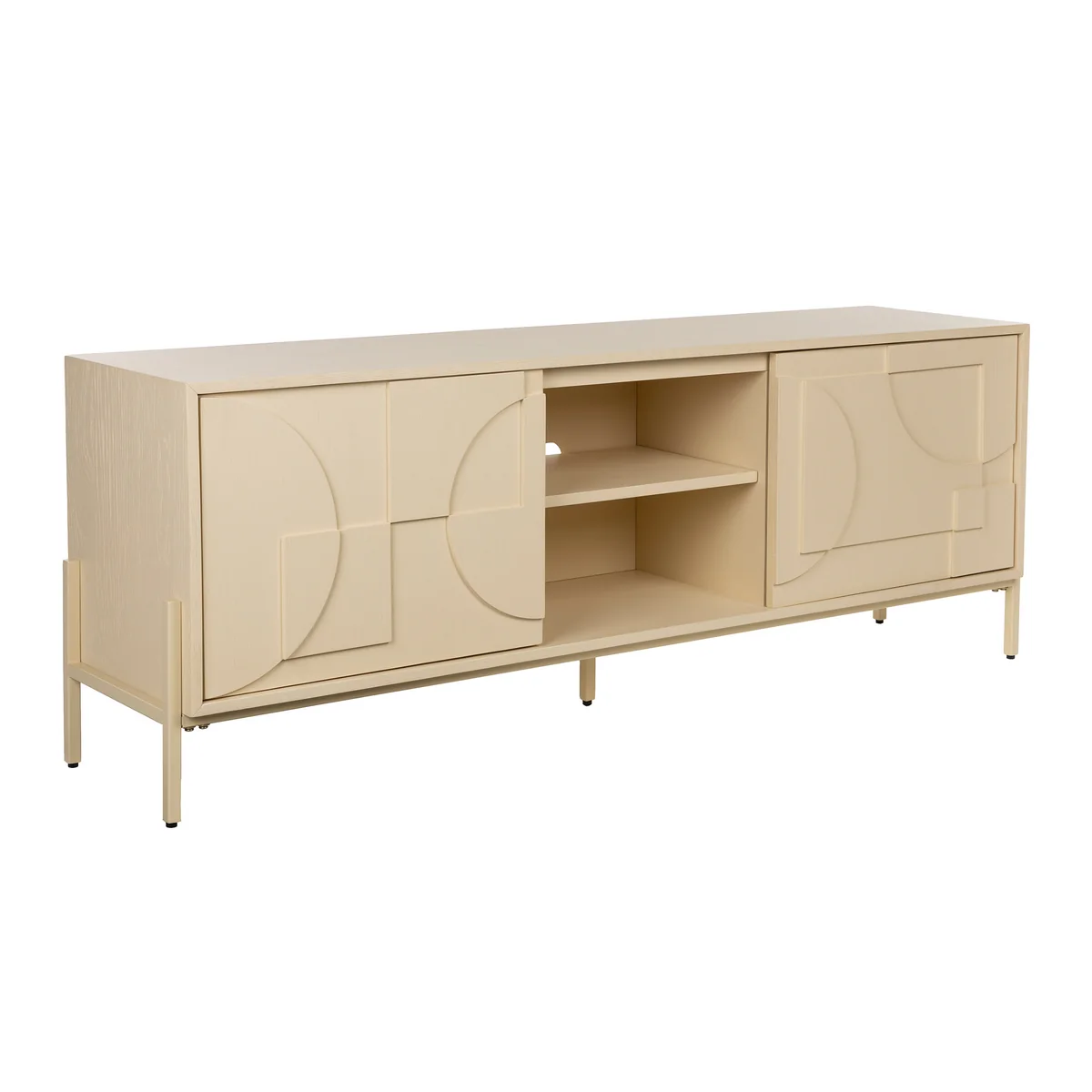 Das Faces Sideboard vereint funktionalen Stauraum mit einem markanten, grafischen Design. Die Front ist mit einem charakteristischen Relief versehen, das abstrahierte Gesichtszüge andeutet und dem Möbelstück eine künstlerische Note verleiht. Die strukturierte Oberfläche sorgt für spannende Licht- und Schattenspiele und hebt das Sideboard aus der Masse heraus – ohne laut zu sein.