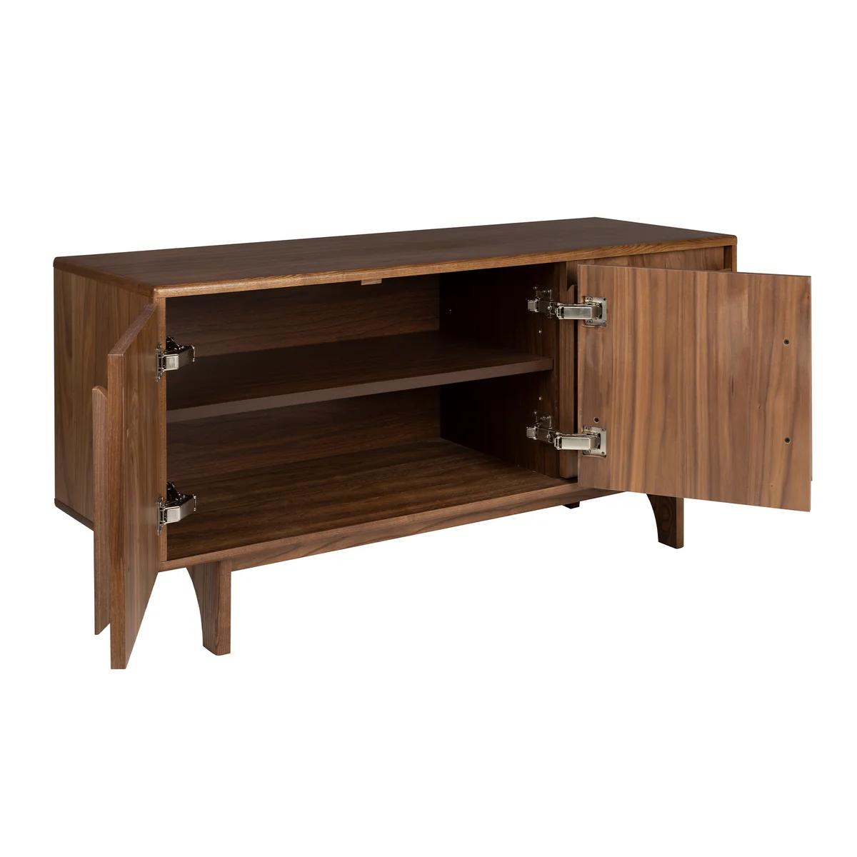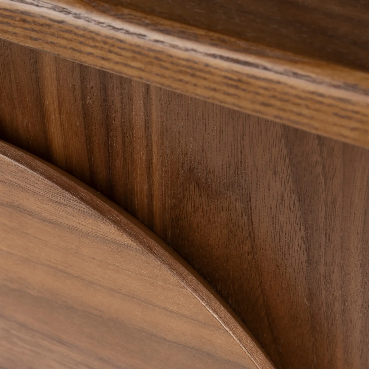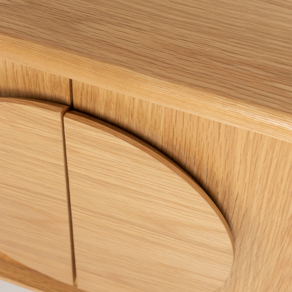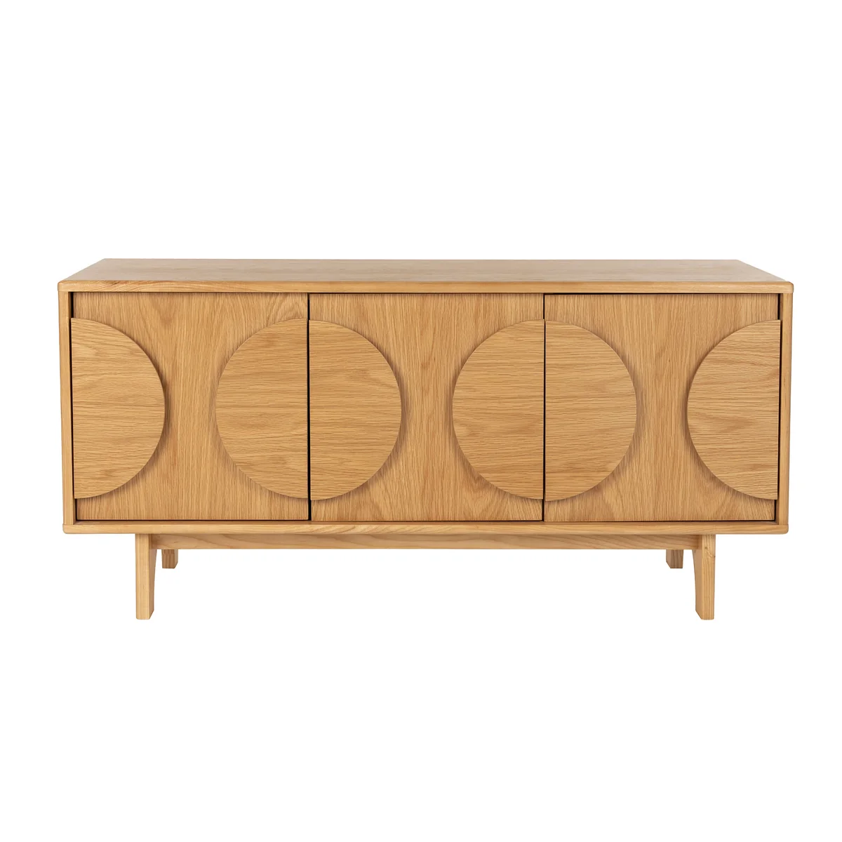 Das Groove Sideboard von Zuiver vereint großzügige Aufbewahrungsmöglichkeiten mit einem markanten Look. Die Holzfronten mit runden Elementen und die fein geschwungenen Beine verleihen dem Möbelstück eine ausdrucksstarke Formsprache mit einem Hauch Retro.