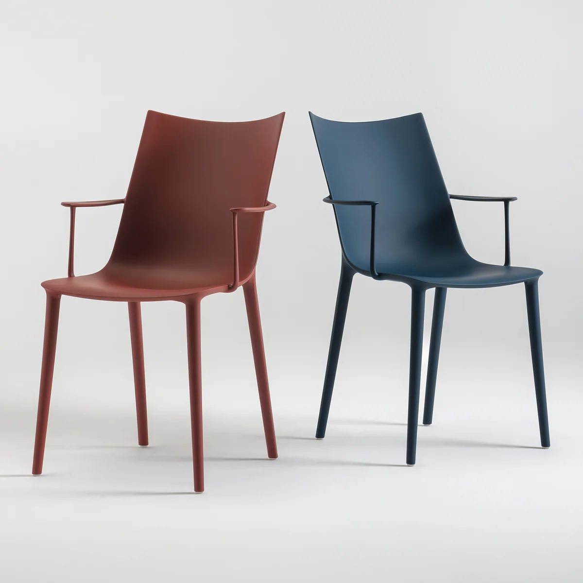 Der H.H.H. Armlehnstuhl von Kartell, entworfen vom renommierten Designer Philippe Starck, vereint zeitlose Eleganz mit moderner Nachhaltigkeit. Gefertigt aus hochwertigem, recycelbaren Polycarbonat, besticht dieser Stuhl durch seine robuste Leichtigkeit und die charakteristische, klare Linienführung, die das ikonische Design von Starck widerspiegelt.
