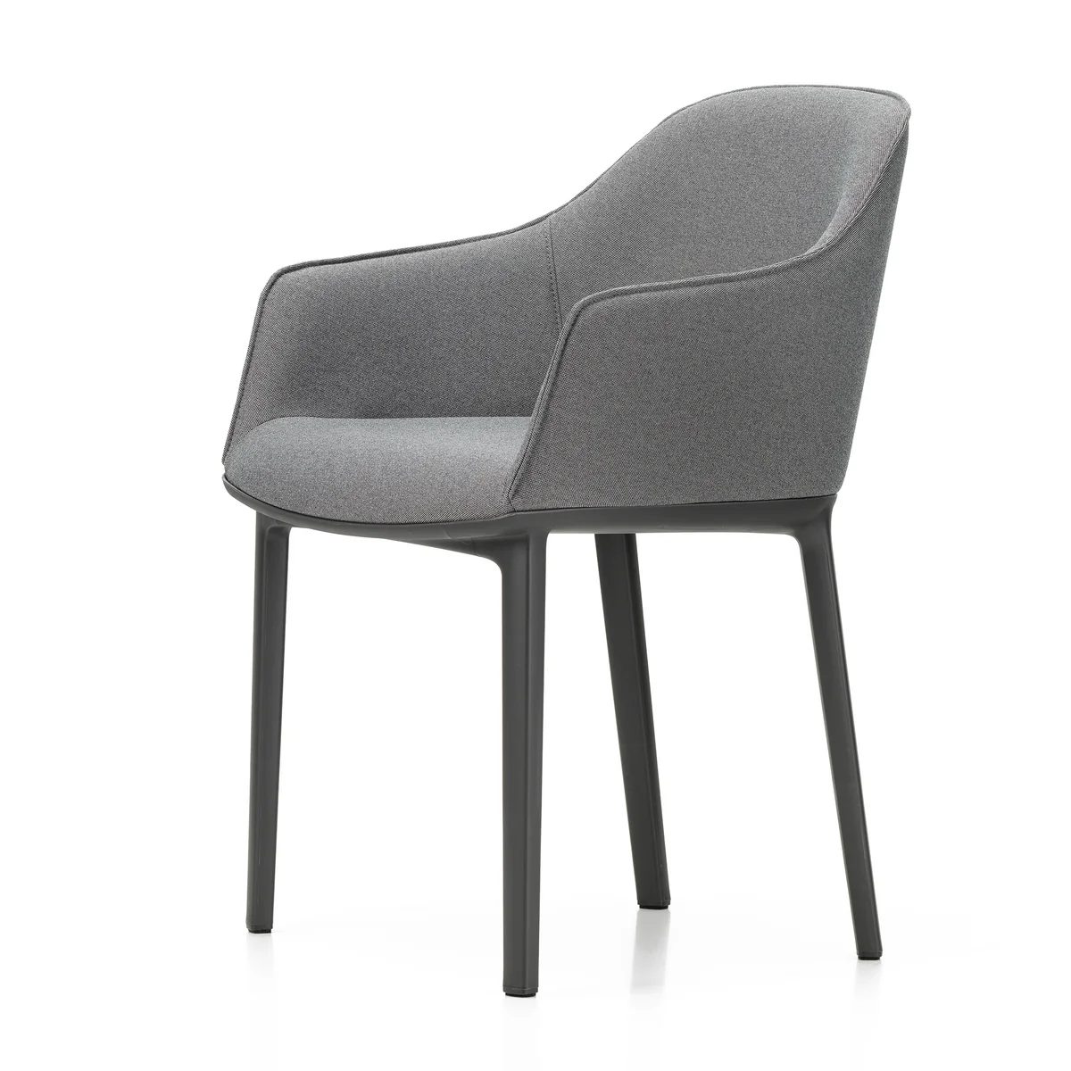 Der Softshell Armchair von Ronan und Erwan Bouroullec für den Hersteller Vitra begeistert mit seinem großartigen Komfort. Die Rückenlehne des Stuhls verfügt über flexible, integrierte Lamellen, welche maximale Bewegungsfreiheit bieten. Der Armlehnstuhl erhält dank seine Vierbeinuntergestells einen äußerst edlen Look. In gruppierter Ausführung können die Stühle wunderbar am Esstisch platziert werden. Die Polsterung aus Polyesterschaum sorgt für bequemes Sitzen im Alltag. Die Softshell Schale wird aus glasfaserverstärktem Polyamid gefertigt, das Untergestell besteht aus Polyamid.