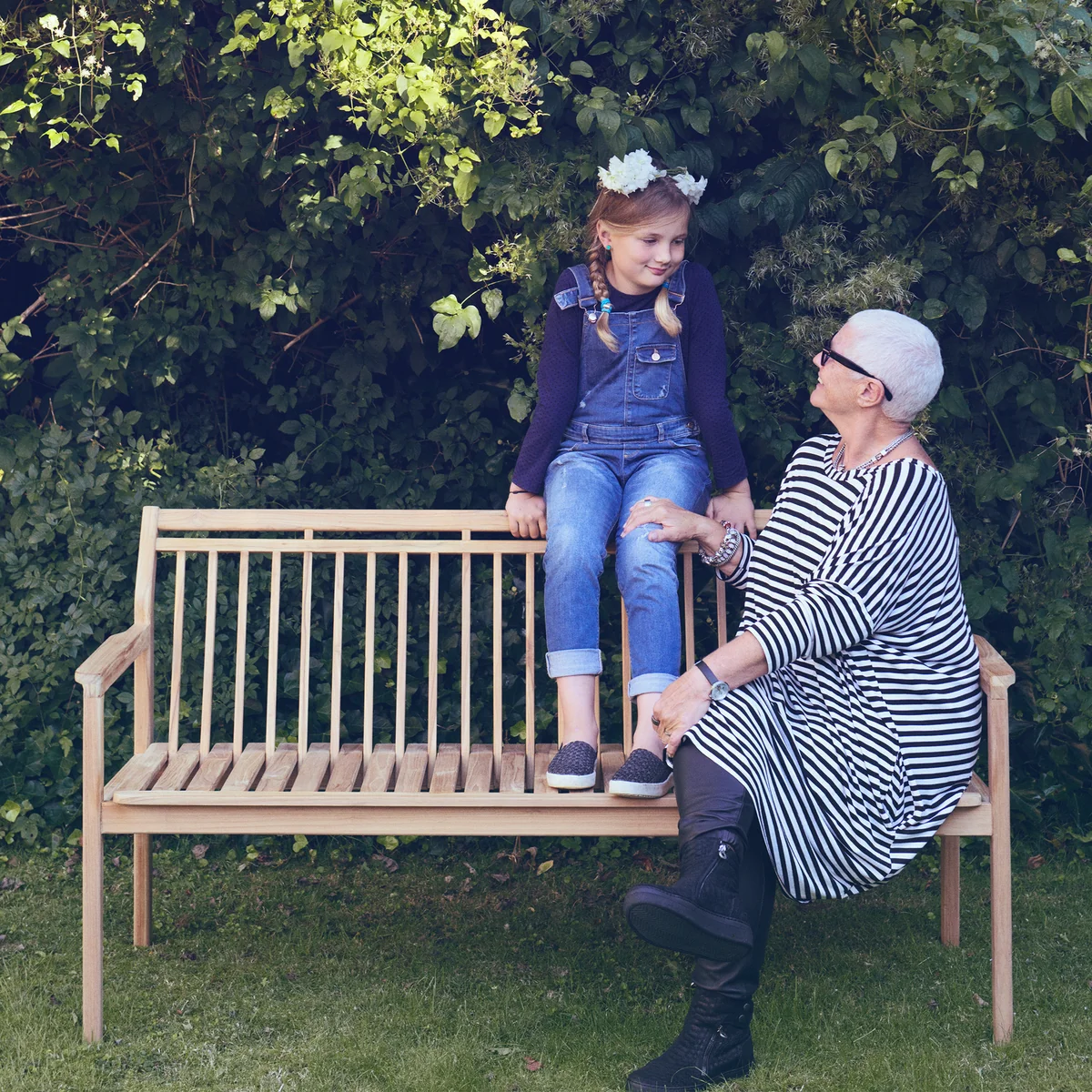 Die Gartenbank mit Rückenlehne von FDB Møbler überzeugt durch ihren minimalistischen Ausdruck und die einfachen und klaren Linien. Die Bank aus geöltem Teakholz eignet sich bestens für den Außenbereich und wurde von Thomas E. Alken entworfen. Robust und witterungsbeständig kann die Bank als Sitzfläche an einem Esstisch auf der Terrasse dienen und wird im Garten zum bequemen Ort zum Verweilen und Entspannen.