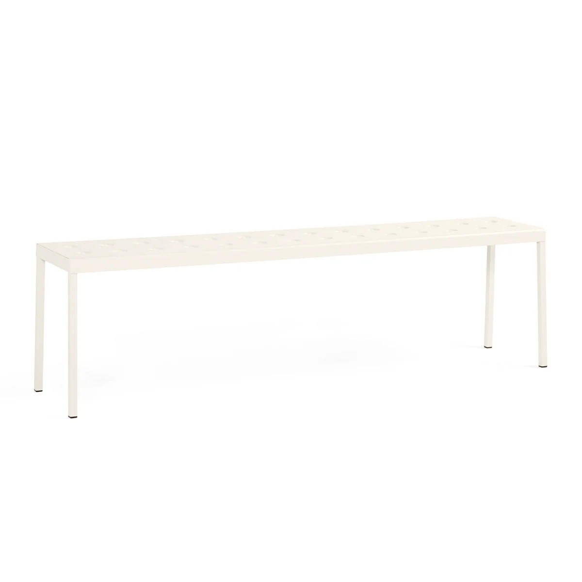 Die Balcony Bank von Ronan und Erwan Bouroullec für HAY ist eine elegante Sitzbank für den Außenbereich. Das schlichte, rechteckige Design erhält durch seine schlanken Beine einen lockeren Touch. Die zahlreichen Löcher auf der Sitzoberfläche verleihen der Konstruktion Stabilität, wodurch zugleich ein besonderer Ausdruck entsteht. Balcony wird aus pulverbeschichtetem Stahl gefertigt und ist mit einer Beschichtung versehen, welche optimale Widerstandsfähigkeit und Langlebigkeit gewährleistet. So kann die Sitzbank ideal im Außenbereich genutzt werden.