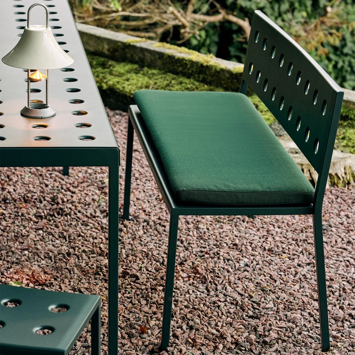 Die Balcony Lounge Bank vom Designer-Duo Ronan und Erwan Bouroullec für HAY ist eine überaus elegante und bequeme Sitzmöglichkeit für den Außenbereich. Das eckige Design erhält durch seine schlanken Beinen einen lockeren Look. Die Löcher auf der Sitz- und Rückenfläche verstärken das Konstrukt der Bank, sorgen gleichzeitig jedoch optisch für einen tollen Blickfang. Balcony Lounge wird aus pulverbeschichtetem Stahl gefertigt. Die Grundierung ermöglicht, dass die Bank optimal gegenüber Wind und Wetter gewappnet ist. In unterschiedlichen Farben erhältlich.