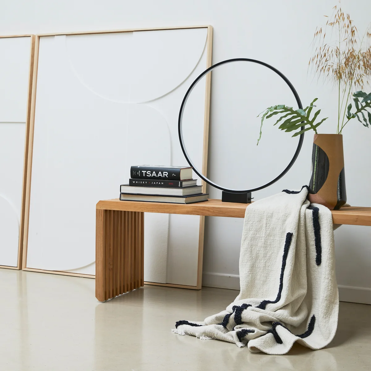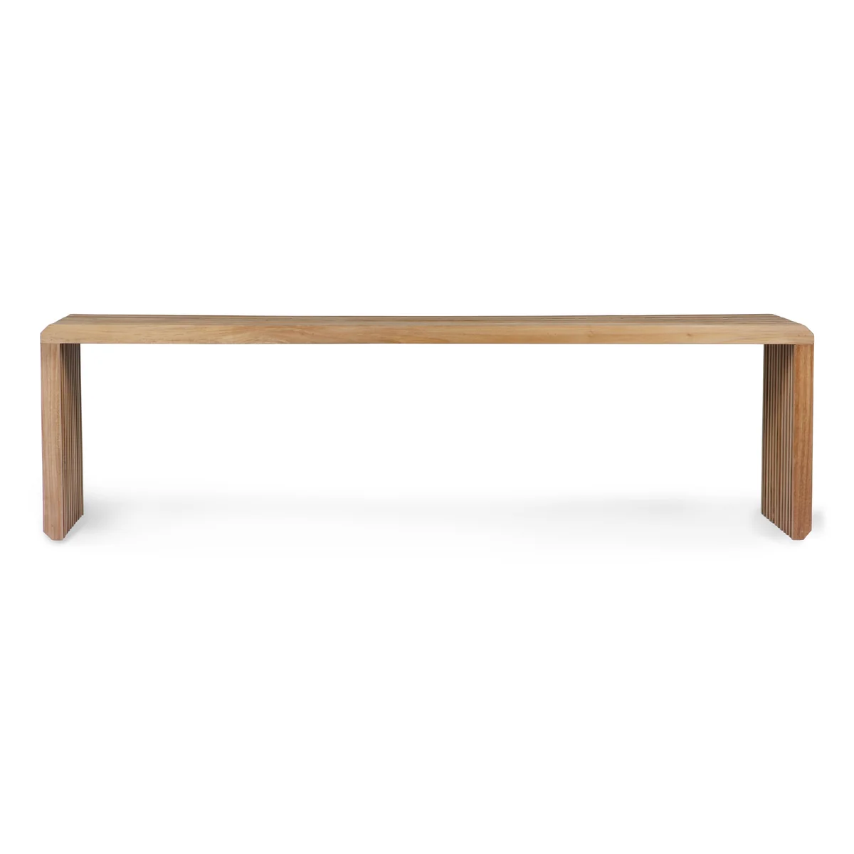 Die Slatted Bank von HKliving ist eine schlichte, und dennoch geniale Holzbank, die mit ihrer minimalistischen Formensprache echte Akzente setzt. Egal, ob im Wohnzimmer, am Esstisch, der Küche, oder im Schlafzimmer: Diese Bank ist stilvoll und gemütlich. Seinen Namen erhält die Bank durch ihr charakteristisches Design: Einzelne Holzlatten sind in einem Lattenrost-Look zu einer robusten und stabilen Bank verbaut.