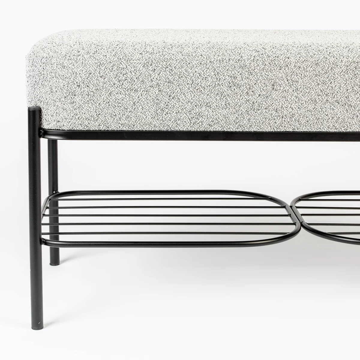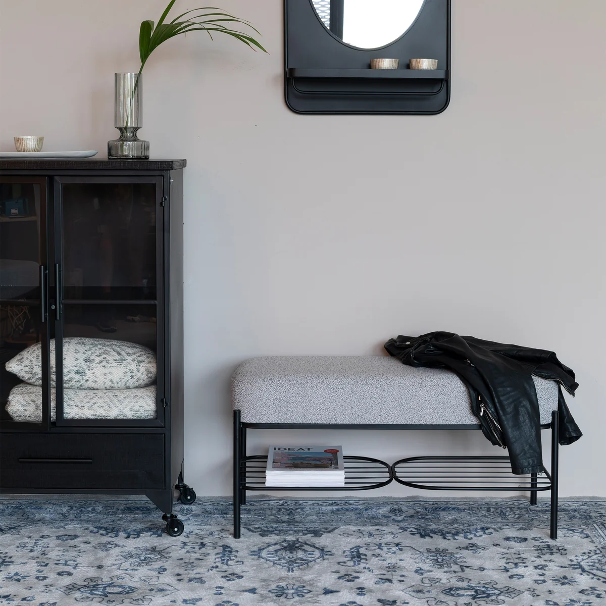 Die Comfy Bank von Livingstone Design ist eine Sitzbank, die viel Interpretationsspielraum lässt. Sie verfügt über einen stabilen, eisernen Rahmen mit einem großen, offenen Stauraum, in dem Alltagsgegenstände oder kleine bequeme Kissen verstaut werden können.