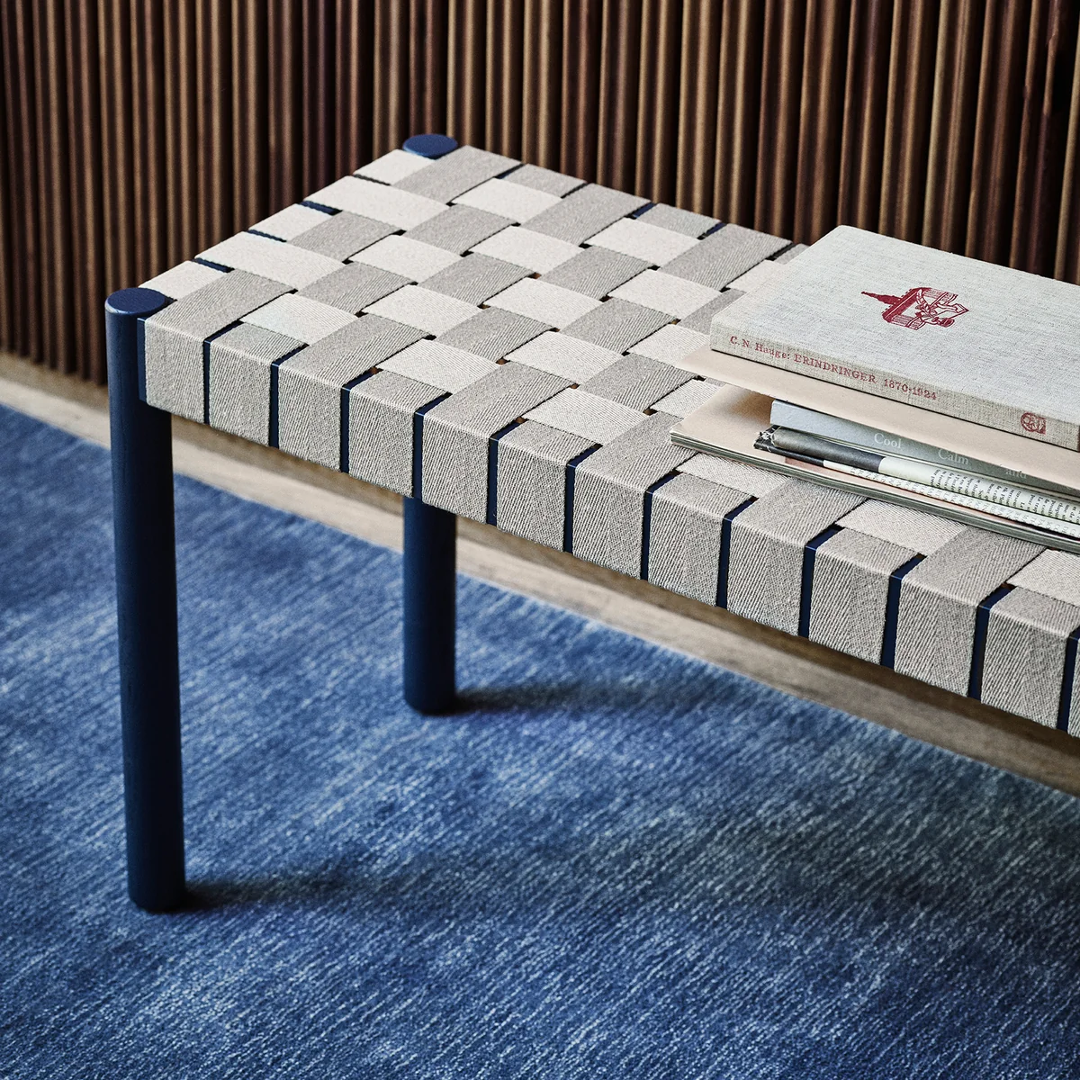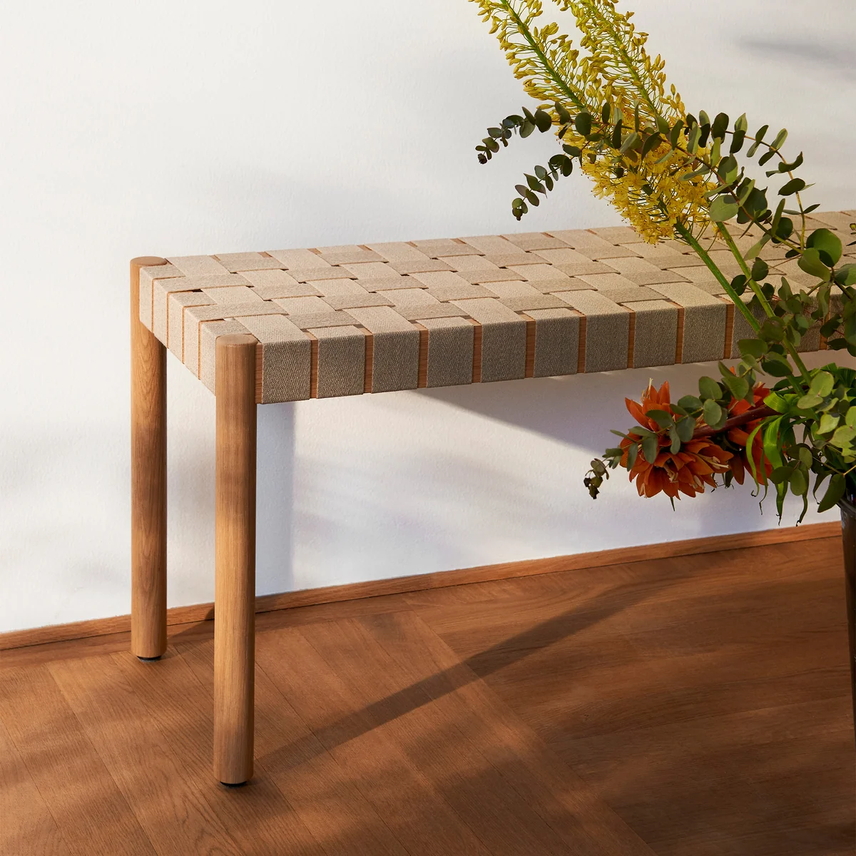 Ihre gewebte Sitzfläche dient einerseits als charakteristisches Merkmal und andererseits dem Komfort der Bank. So kann sie zum Beispiel im Flur zum Anziehen der Schuhe genutzt werden, oder als zusätzliche Sitzgelegenheit im Wohnzimmer oder am Esstisch.