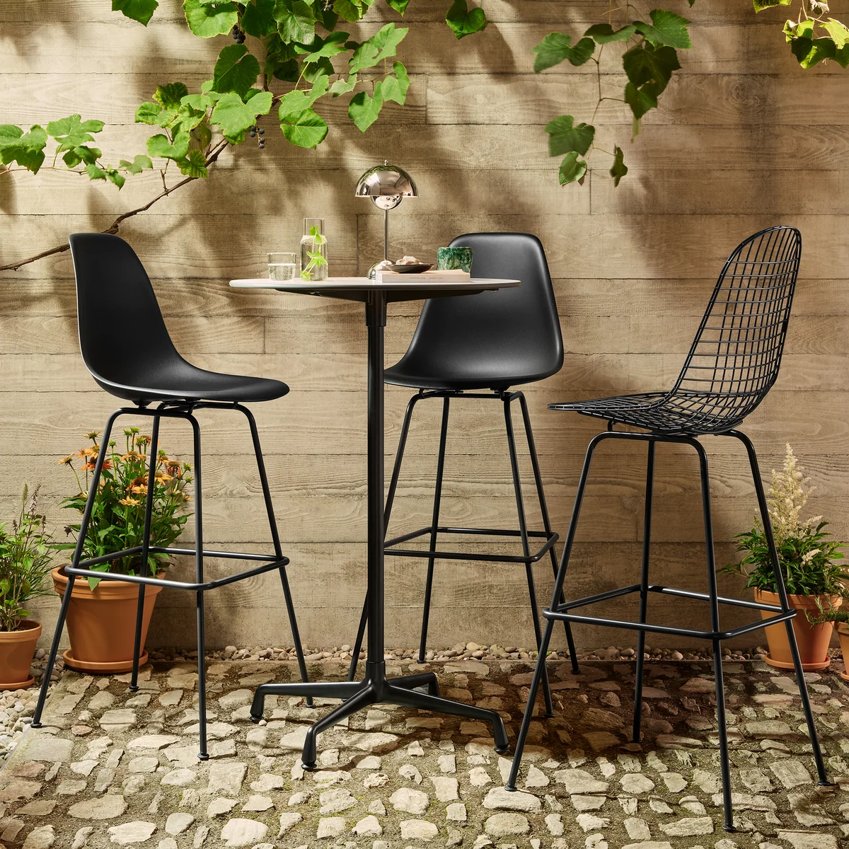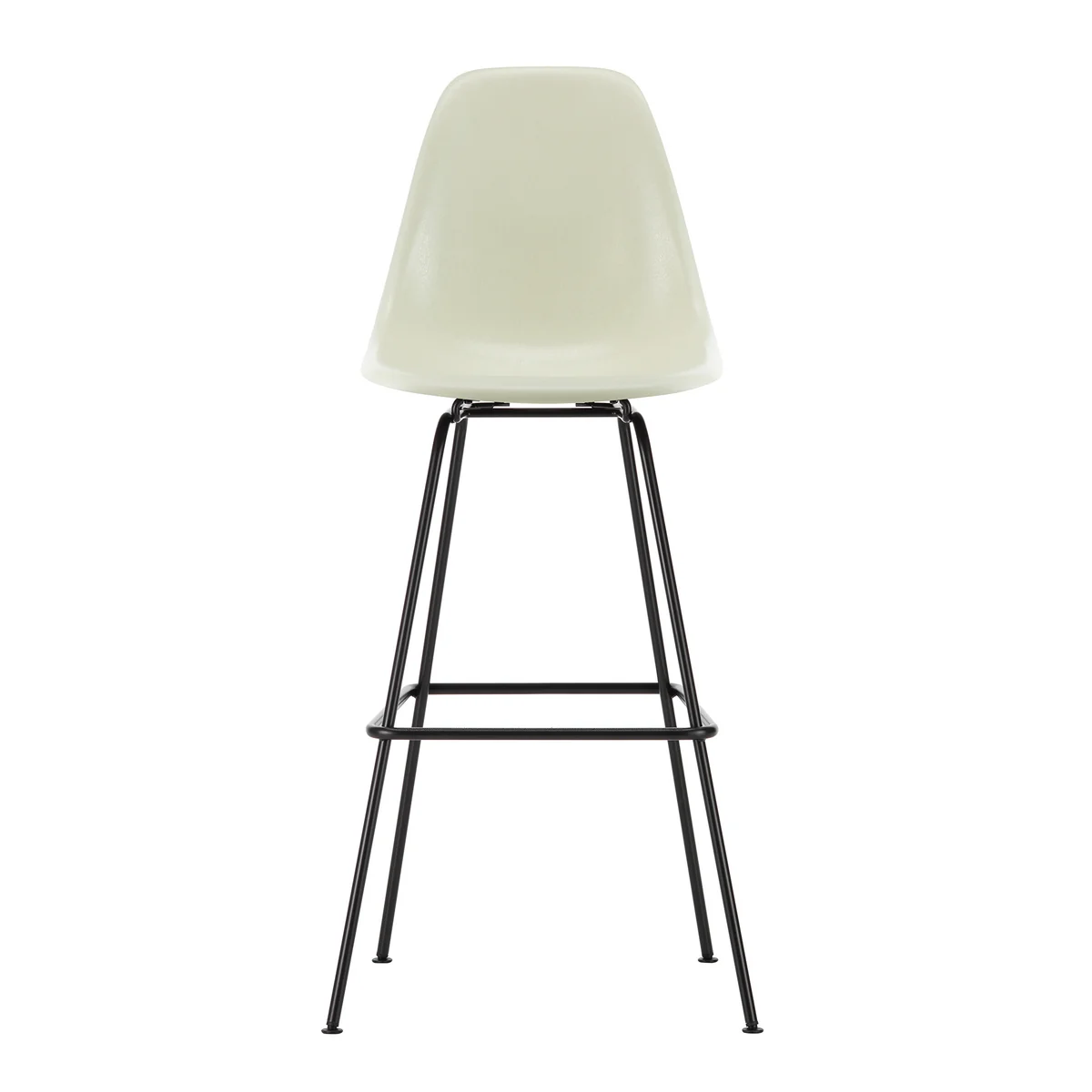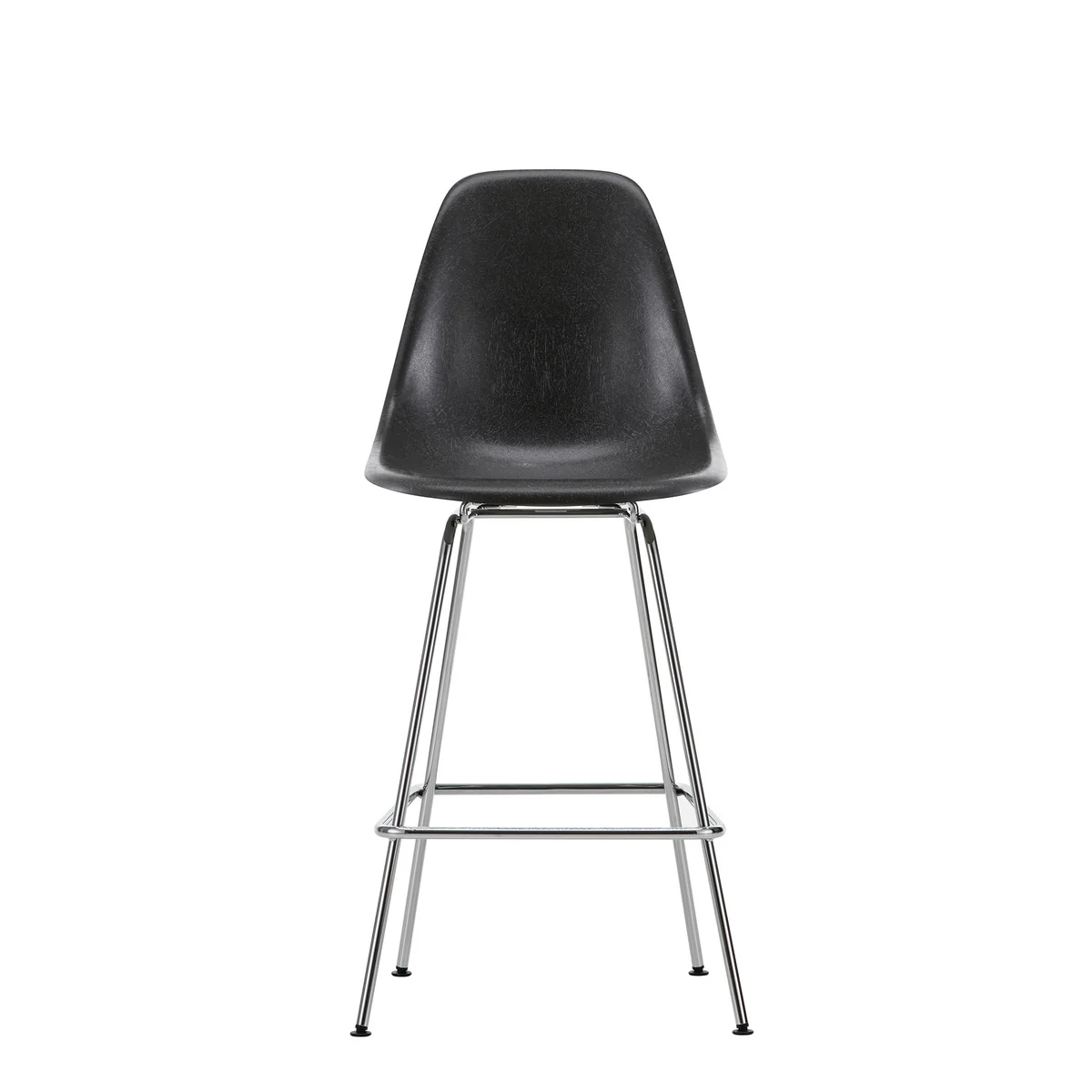 Charles und Ray Eames haben mit den Eames Fiberglass Barstühlen für Vitra die ersten industriell gefertigten Stühle aus Kunststoff entwickelt. Ihre organisch geformten Sitzschalen sind mit verschiedenen Untergestellen erhältlich. Das Vierbeinuntergestell des Eames Fiberglass Barstuhls ist in zwei Höhen erhältlich: Medium für typische Küchenbars und Hoch für Stehtische. Es ist entweder schwarz pulverbeschichtet oder verchromt und verfügt über eine Fußstütze.