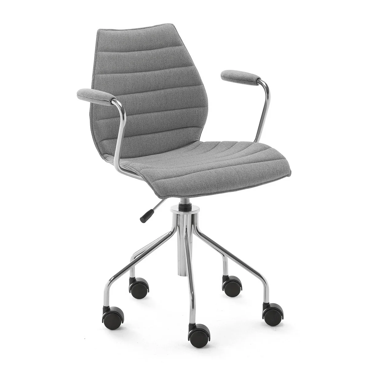 Der Maui Soft Bürostuhl von Kartell ist nicht bloß vielseitig und gemütlich- sein Polster besteht auch zu 50% aus recycelter Faser. Erhältlich in vielen wunderschönen Farben. Das Gestell des komfortablen Stuhls besteht aus verchromten Stahl, das Polster aus Nylon mit Stoffüberzug.