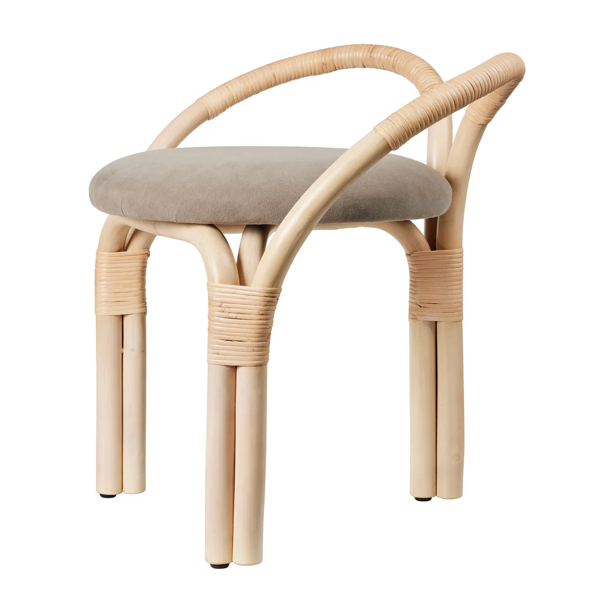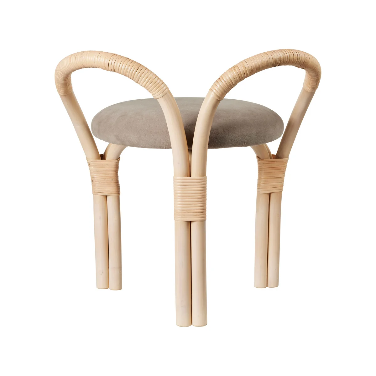 - Dreibeiniger Hocker aus dampfgebogenem Rattan