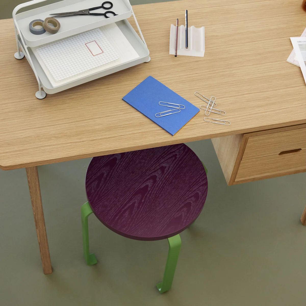 Stapelbarer Hocker aus Eschenholz und Metall