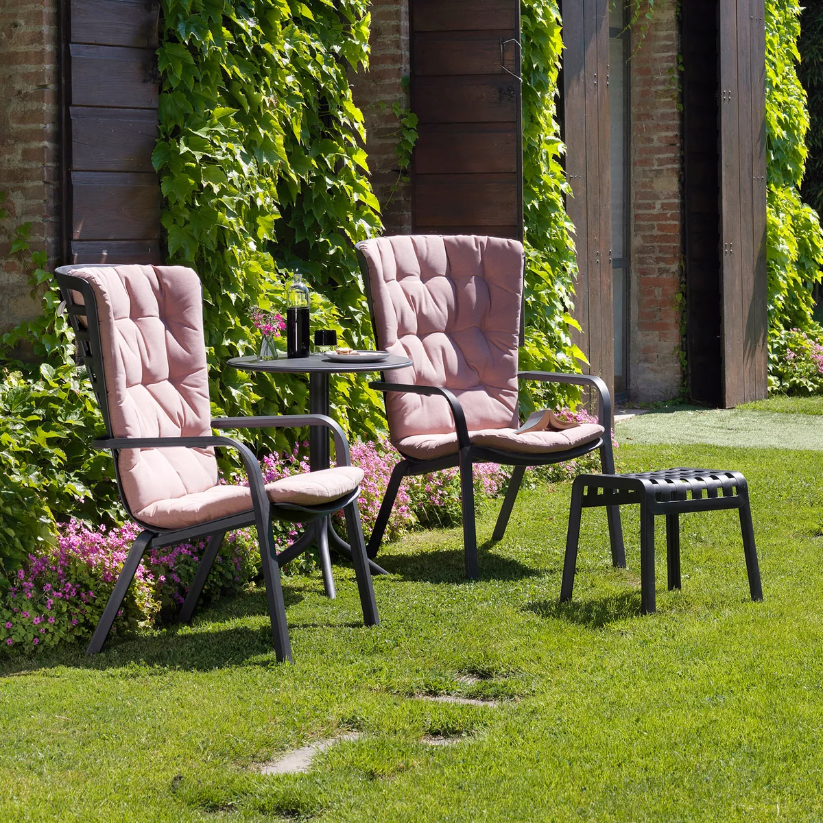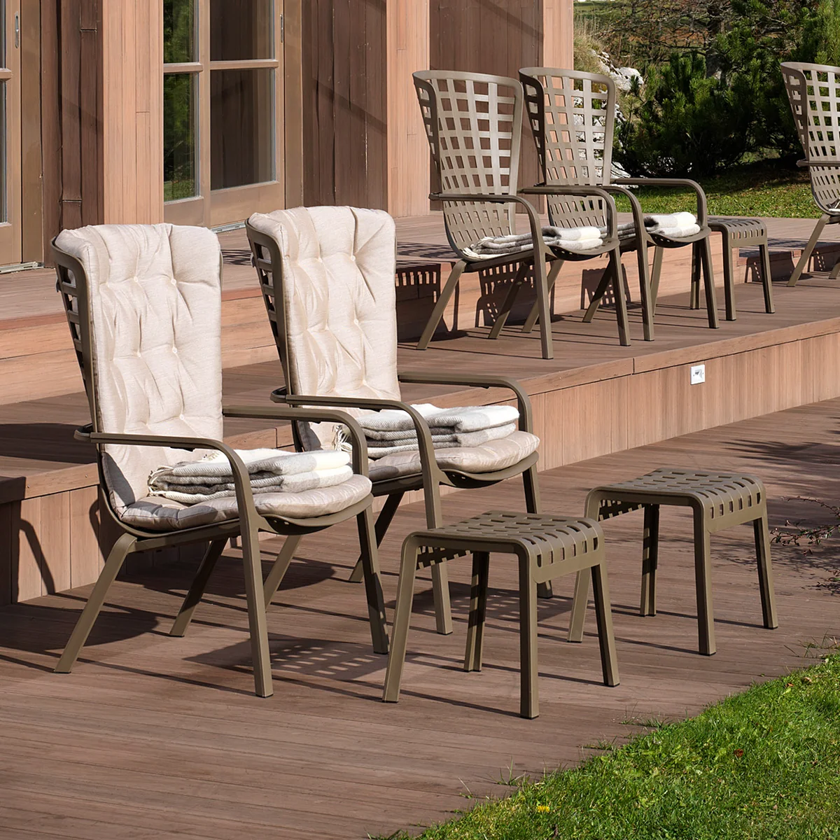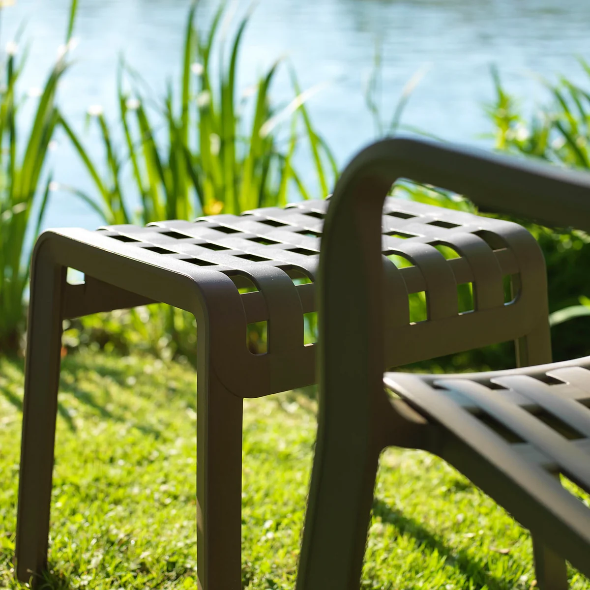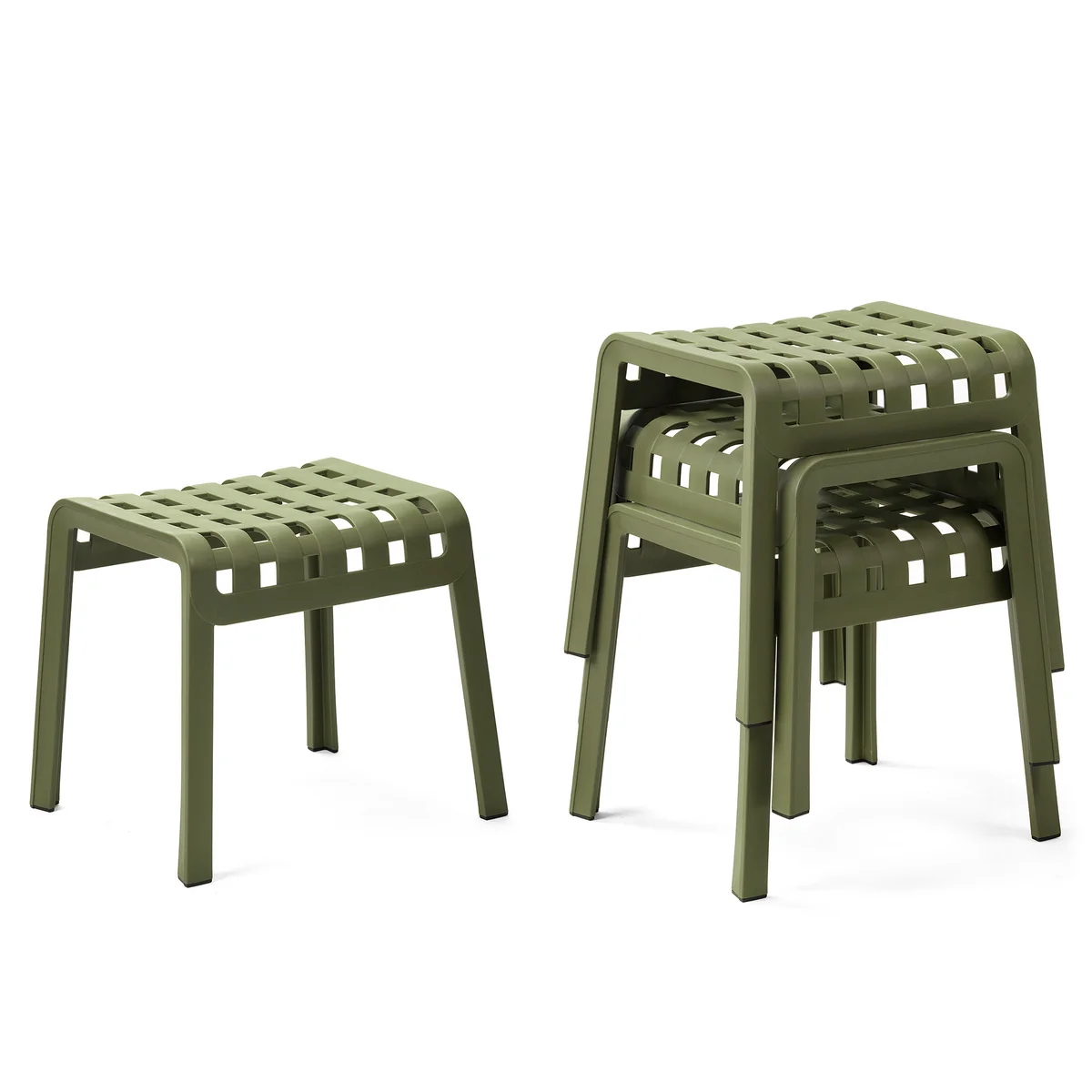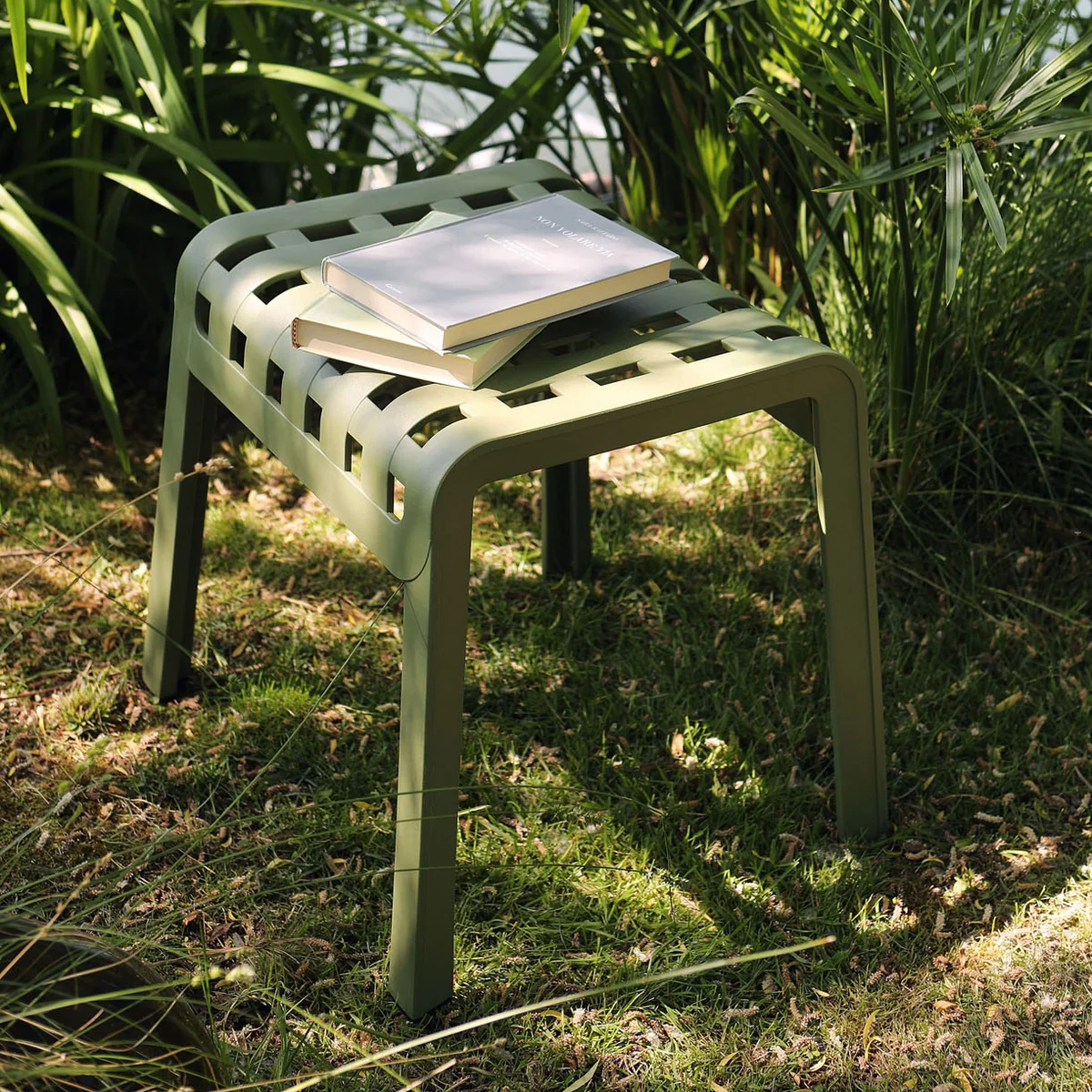 Der Poggio Hocker von Nardi ist ein Fußschemel und eine Sitzgelegenheit für den Outdoor-Bereich. Hergestellt aus glasfaserverstärktem Kunststoff zeichnet sich der Hocker durch eine gelochte und mit einem Karomuster verzierte Struktur aus, die dem Garten oder der Terrasse einen unkonventionellen Stil verleiht.