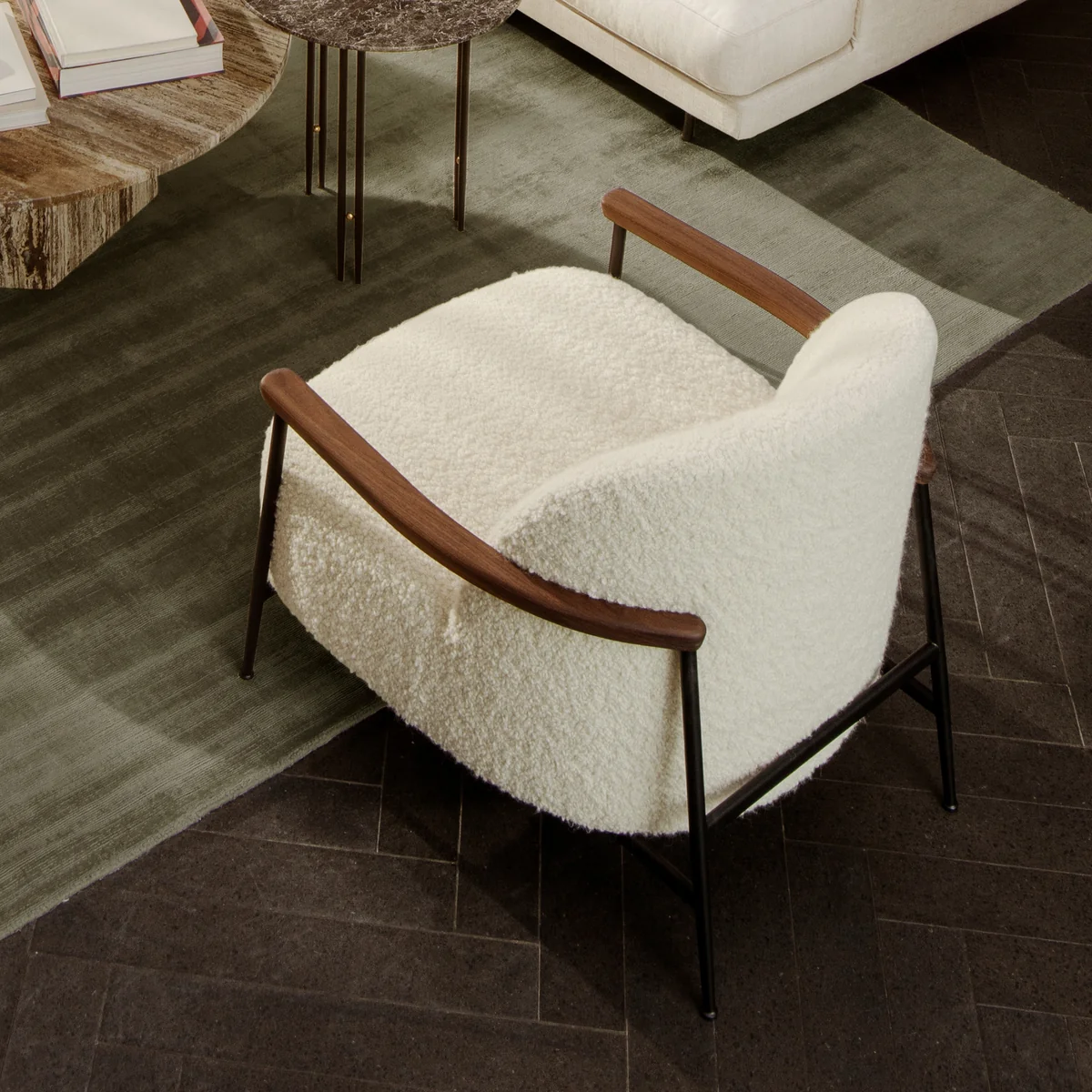 Gubi - Sejour Lounge Chair mit Armlehnen, matt schwarz / Walnuss geölt / Dedar Flair Special 201