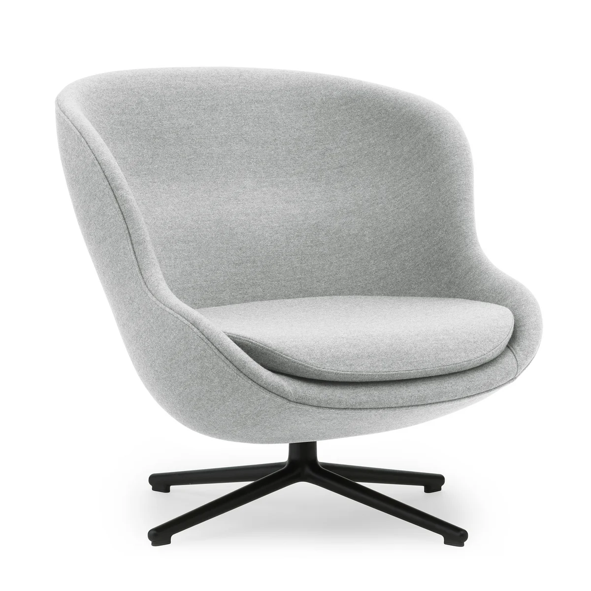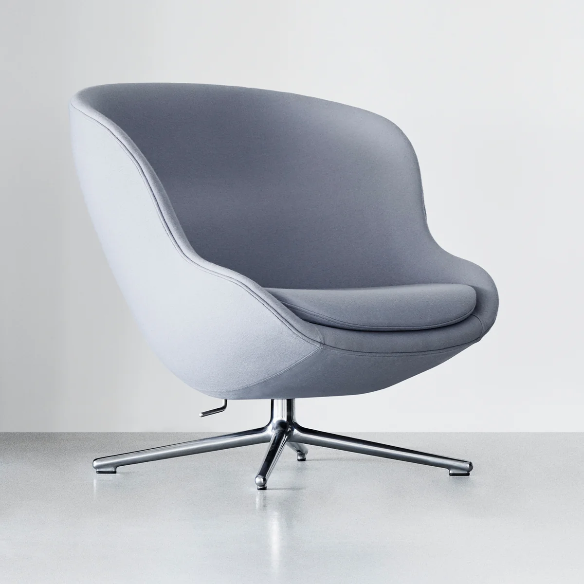 Norman Copenhagen stellt den Hyg Lounge-Sessel aus einem Aluminiumgestell und einer mit Stahl verstärkten Sitzschale her. Die Polsterung ist mit einem Stoff des Herstellers Camira bezogen, welcher aus weicher Schurwolle besteht.