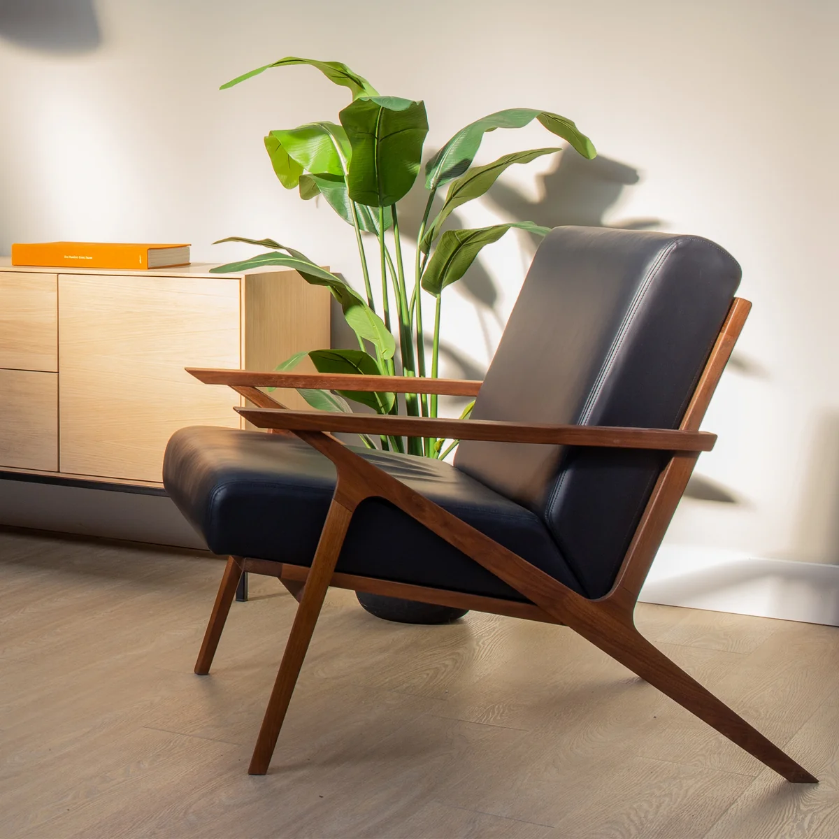 Studio Zondag - Jesper Lounge Stuhl, Nussbaum / Leder schwarz