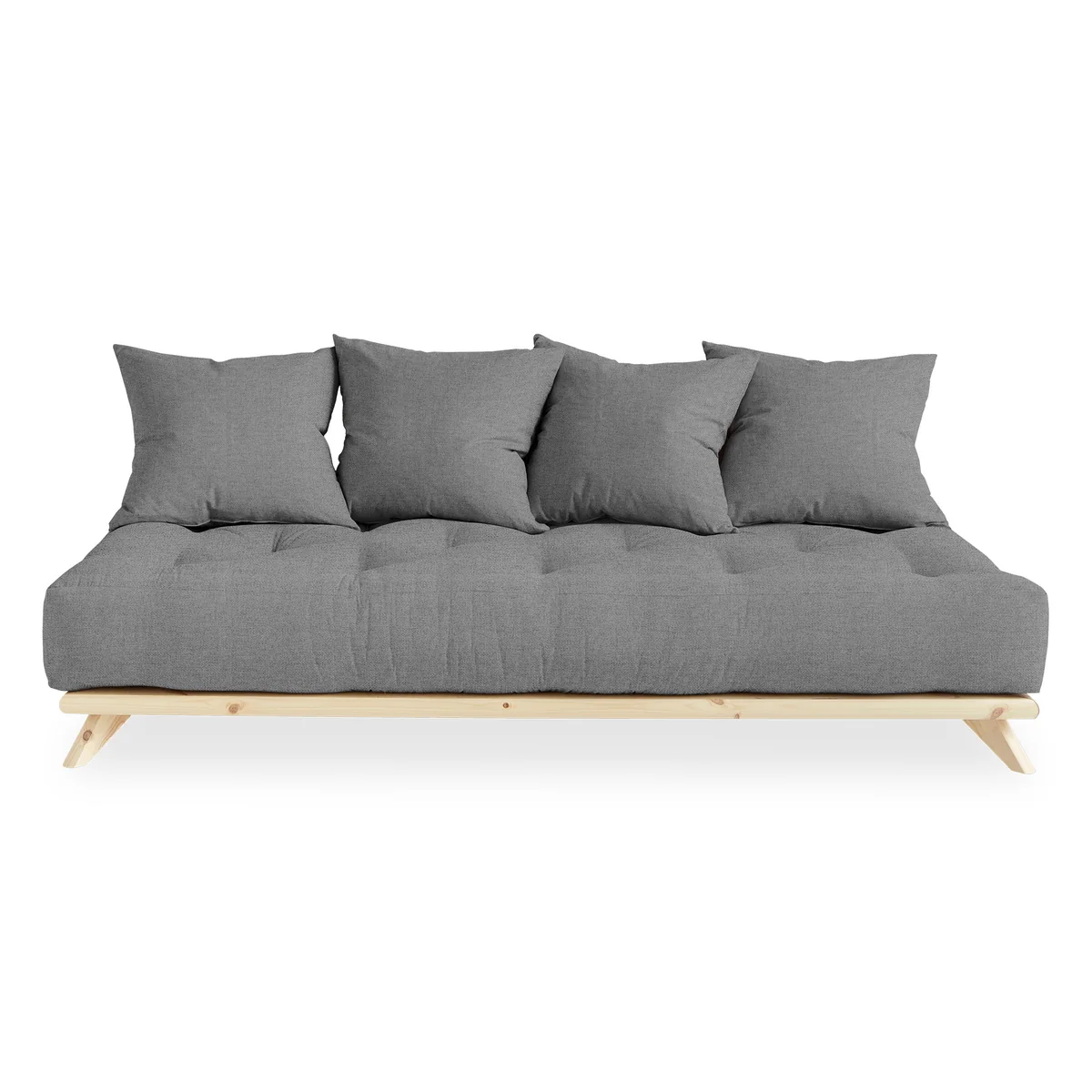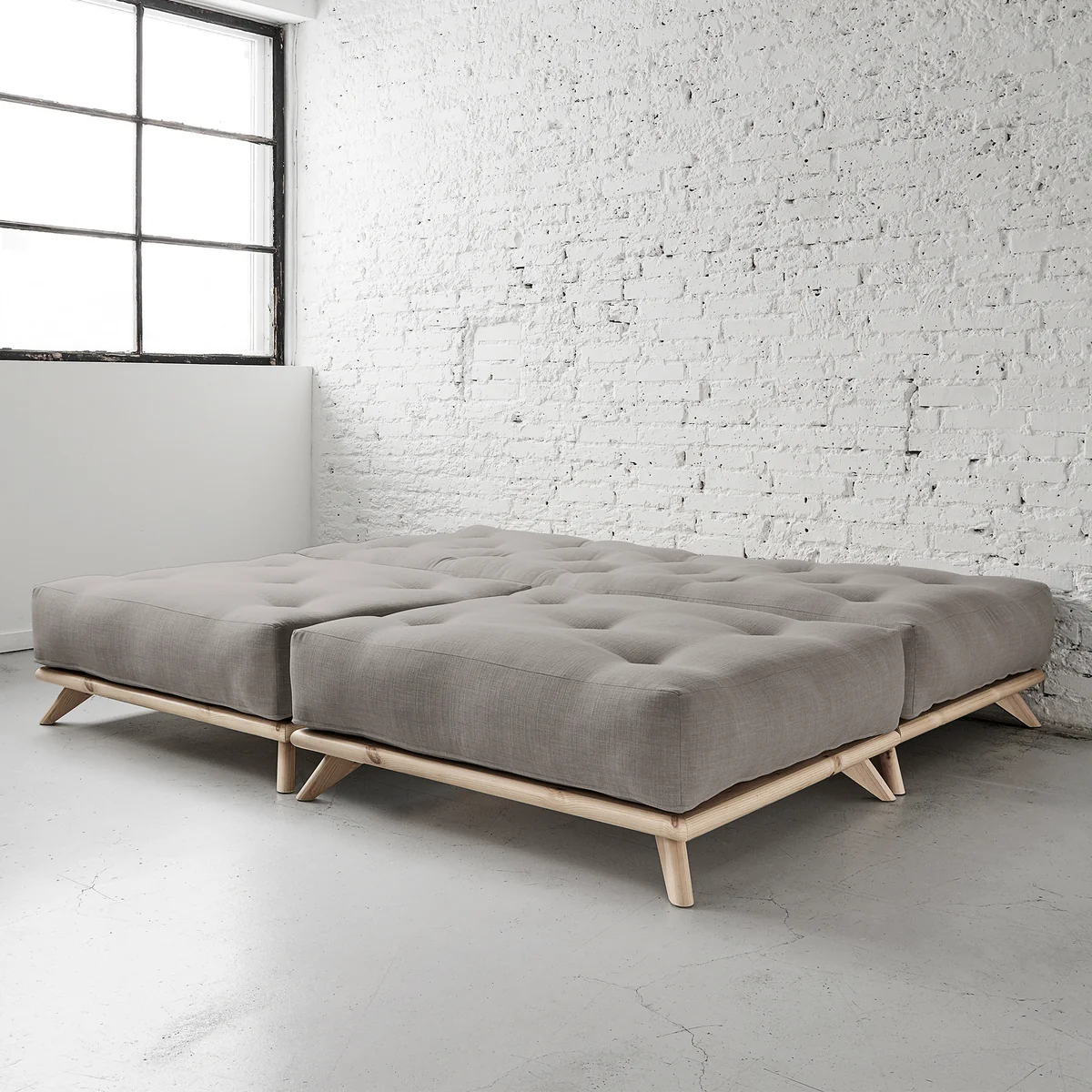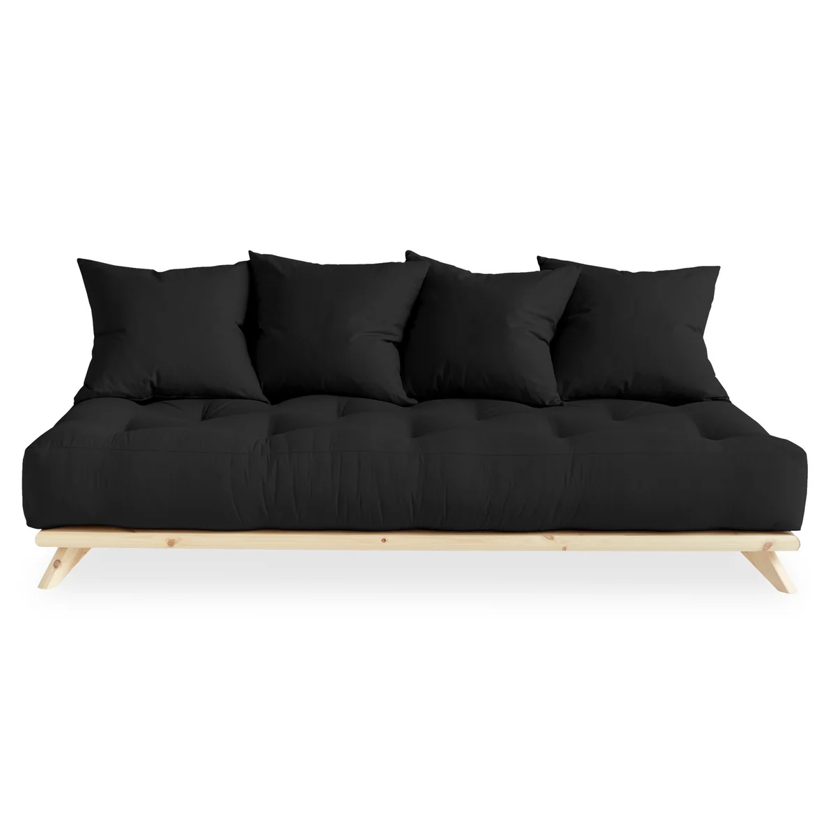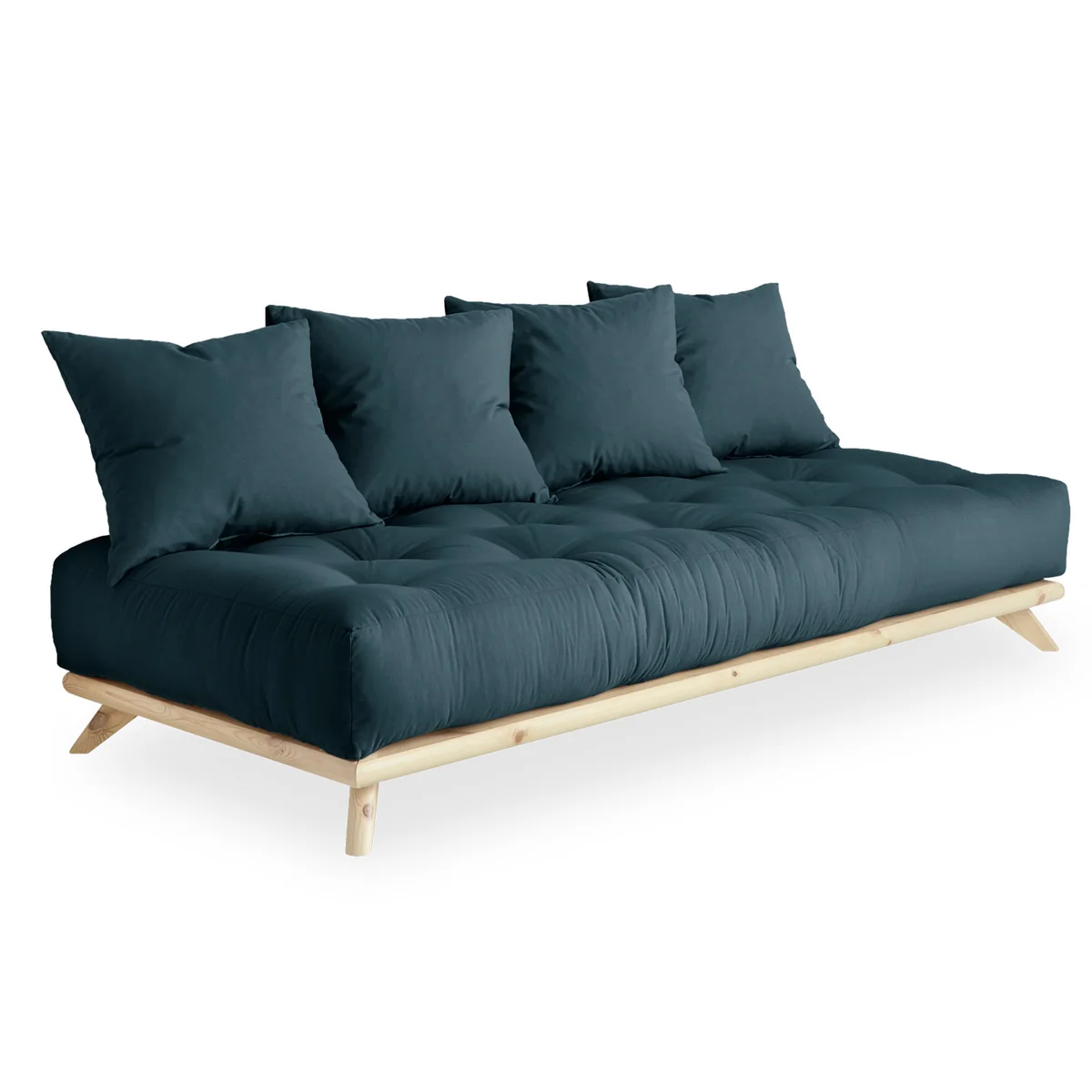 Das Senza Sofa von Karup Design ist eine Tagesliege, die durch vier große Kissen zu einem Sofa wird. Die Liege besteht aus einem niedrigen Holzgestell mit einem bequemen Futon. Entfernt man die Kissen, wir das Sofa zum bequemen Bett zum Entspannen oder für Übernachtungsgäste.