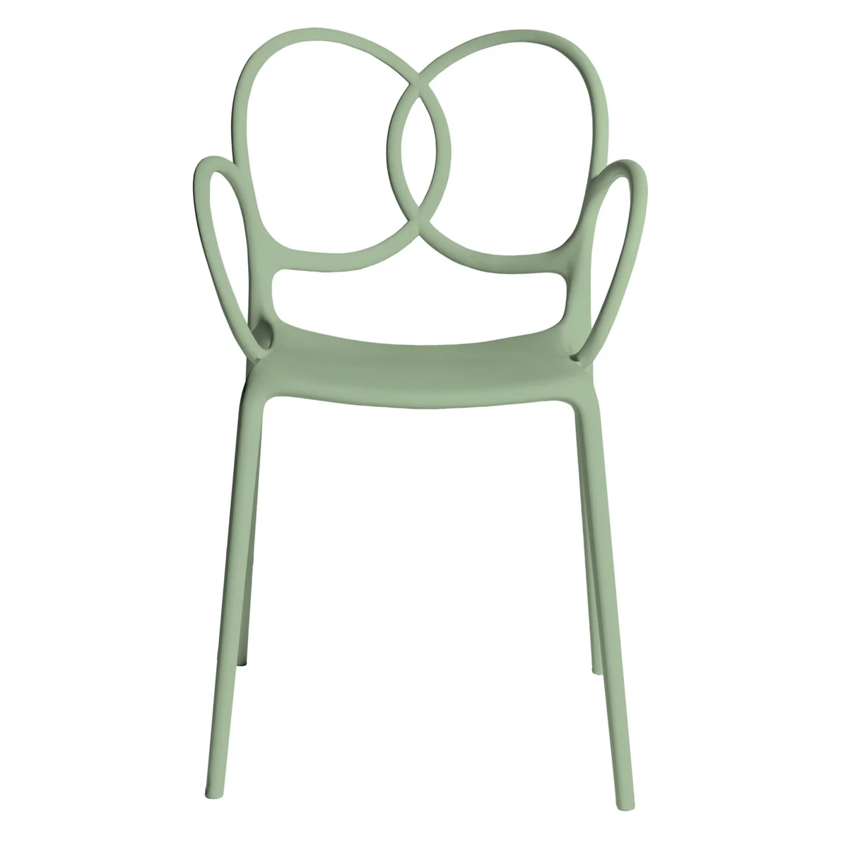 Der Sissi Stuhl ist nicht nur stilvoll, sondern auch funktional: die Stühle sind übereinander stapelbar, hergestellt wird der Sissi Stuhl aus stabilem und widerstandsfähigen Polypropylen. Das eignet ihn nicht nur für den Innenbereich, sondern auch für draußen- auf Terrasse, und Balkon und sogar in Cafés.