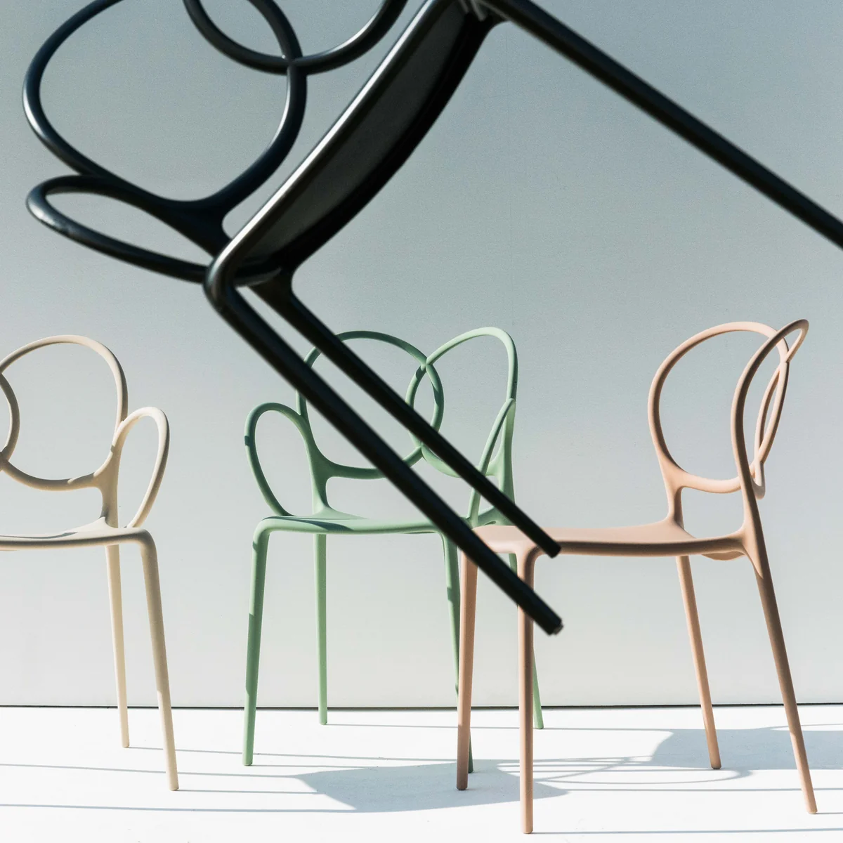 Der Sissi Stuhl von Driade ist ein moderner und vielseitiger Stuhl. Mit seiner femininen und geschwungenen Form ist er ein selbstbewusster Design-Akzent in jedem Ambiente- fast scheint es so, als seien die charakteristisch verflochtenen Ringe der Rückenlehne von den Händen der Wiener Handwerker des 20. Jahrhunderts geformt worden! Das Design steht für runde, organische Formen und wiederkehrende Verbindungen, die sich an den berühmten Wiener Stühlen orientieren. Entworfen wurde es vom italienischen Designerpaar Ludovica und Roberto Palomba.
