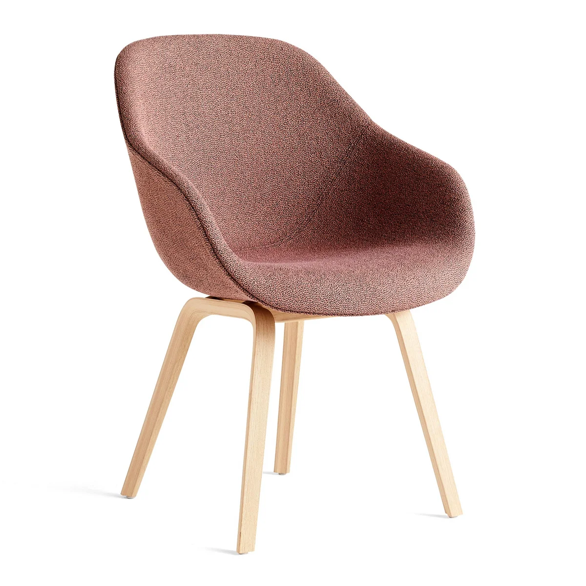Ausgestattet mit eleganten, leicht nach außen geneigten Holzbeinen, hat der AAC 123 eine zeitlose und organische Ästhetik. Mit seiner weichen Polsterung und dem natürlichen Holzgestell lädt der AAC 123 zum entspannten Sitzen im privaten und öffentlichen Ambiente ein. Am Esstisch, am Schreibtisch oder an Konferenztischen kann der Stuhl eingesetzt werden.