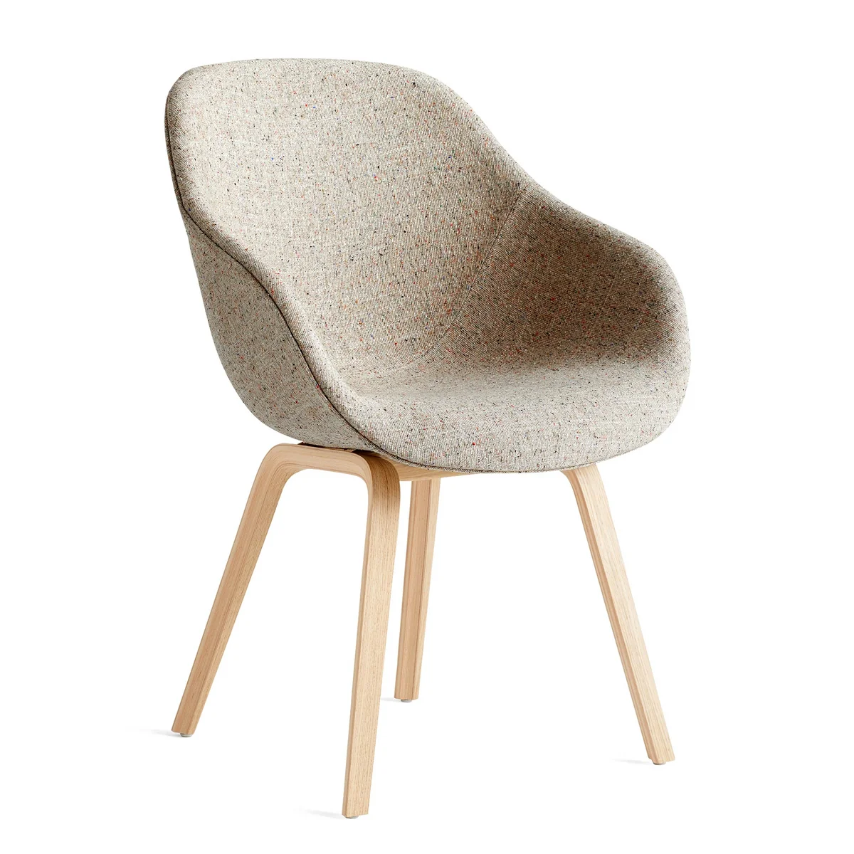 Ausgestattet mit eleganten, leicht nach außen geneigten Holzbeinen, hat der AAC 123 eine zeitlose und organische Ästhetik. Mit seiner weichen Polsterung und dem natürlichen Holzgestell lädt der AAC 123 zum entspannten Sitzen im privaten und öffentlichen Ambiente ein. Am Esstisch, am Schreibtisch oder an Konferenztischen kann der Stuhl eingesetzt werden.