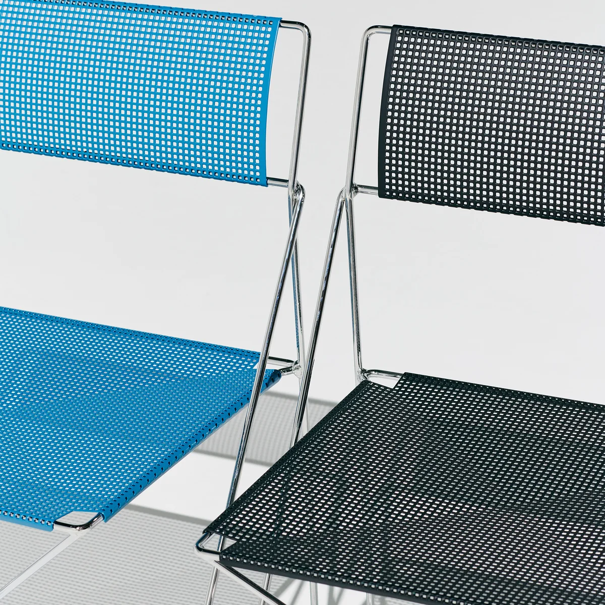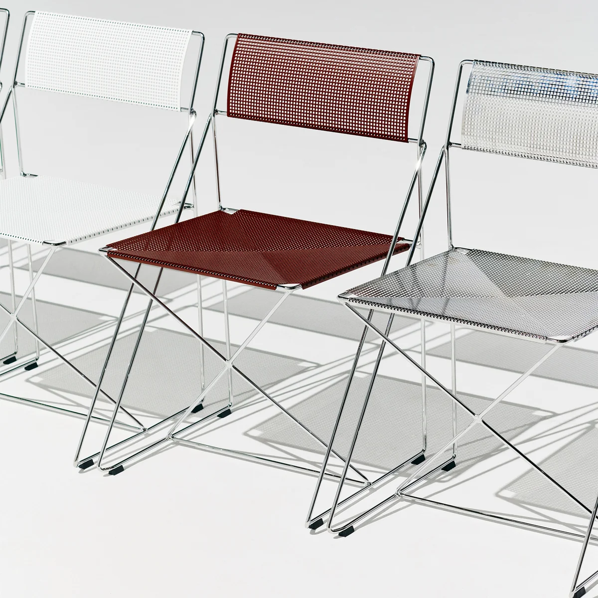 Der X-Line Stuhl von HAY, ursprünglich in den späten 1970er-Jahren von Niels Jørgen Haugesen entworfen, ist ein zeitloser Klassiker des modernen Designs. Gefertigt aus filigranem Metalldraht, spiegelt der Stuhl den industriellen Stil und die präzise Stahlkonstruktion der High-Tech-Bewegung der 70er-Jahre wider.