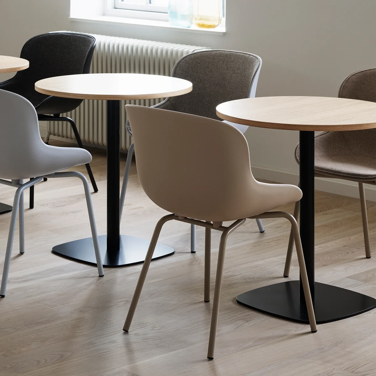 Hyg ist dank seiner gepolsterten Sitzschale nicht nur die ideale Sitzgelegenheit für Küchen- und Esstische, sondern kann auch in Büros, Konferenzräumen und sogar Restaurants eingesetzt werden. Lange Stunden am Tisch werden dank Hyg zu purer Freude – eben Hygge.