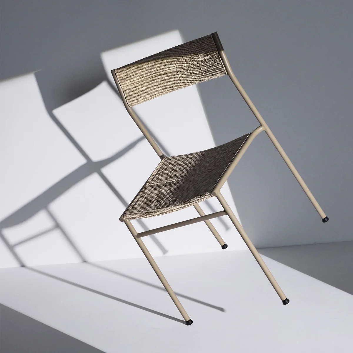 Der Vev Stuhl verbindet moderne Zurückhaltung mit traditioneller Webkunst. Der minimalistische Stahlrahmen trägt eine handgeflochtene Sitzfläche aus 110 Metern Papierkordel und sorgt für natürlichen Ausdruck sowie exzellenten Komfort. „Vev“, das norwegische Wort für „Gewebe“, steht für die harmonische Verbindung aus Handwerk und zeitgemäßer Gestaltung. Die stapelbare, leichte Konstruktion ist ideal für kleine Wohnungen, lebhafte Cafés oder flexible Arbeitsbereiche.