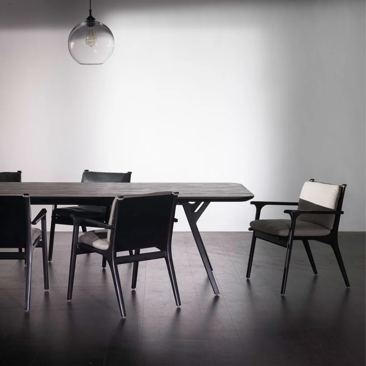 Die aus gebeizter Esche gefertigten Tische und Stühle von Rén greifen diese ausgesprochen nordische Philosophie auf und integrieren handwerkliche Techniken und ästhetische Details aus den Designtraditionen Japans und Chinas, was zu einer Kollektion führt, die zwar von einem bestimmten Ort und einer bestimmten Zeit inspiriert ist, aber in ihrem Umfang sowohl international als auch zeitlos ist.