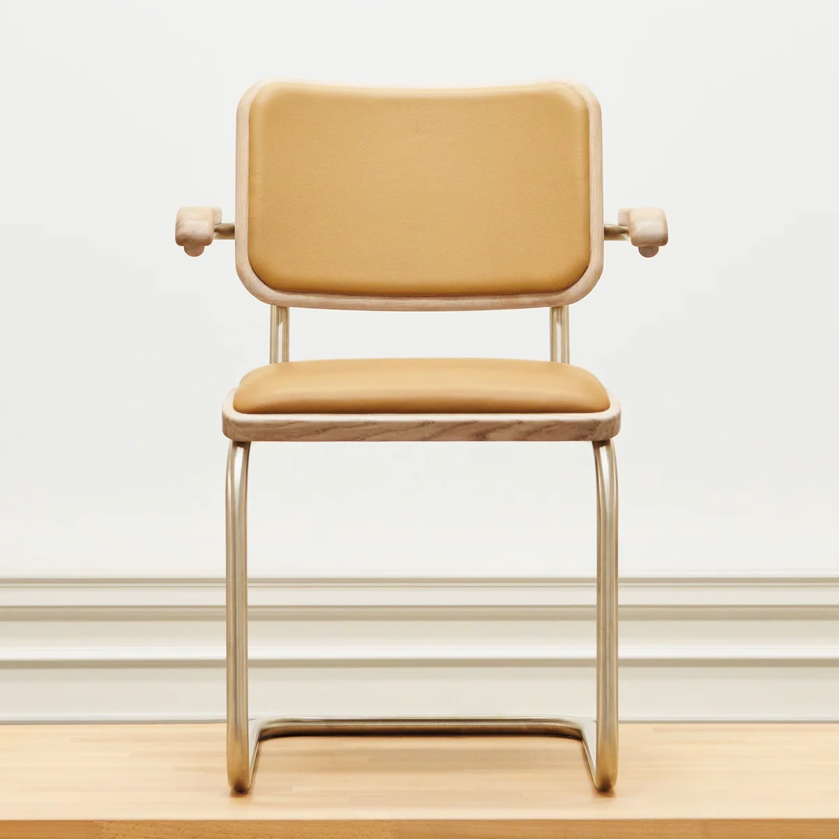 Der ikonische Freischwinger S 64 von Marcel Breuer gehört zu den bekanntesten Stahlrohr-Klassikern des 20. Jahrhunderts. Mit der Kollektion JS . THONET – A PERSONAL INTERPRETATION BY JIL SANDER erhält das Design eine zeitgemäße Neuinterpretation, die Eleganz, Handwerkskunst und raffinierte Materialkombinationen vereint.