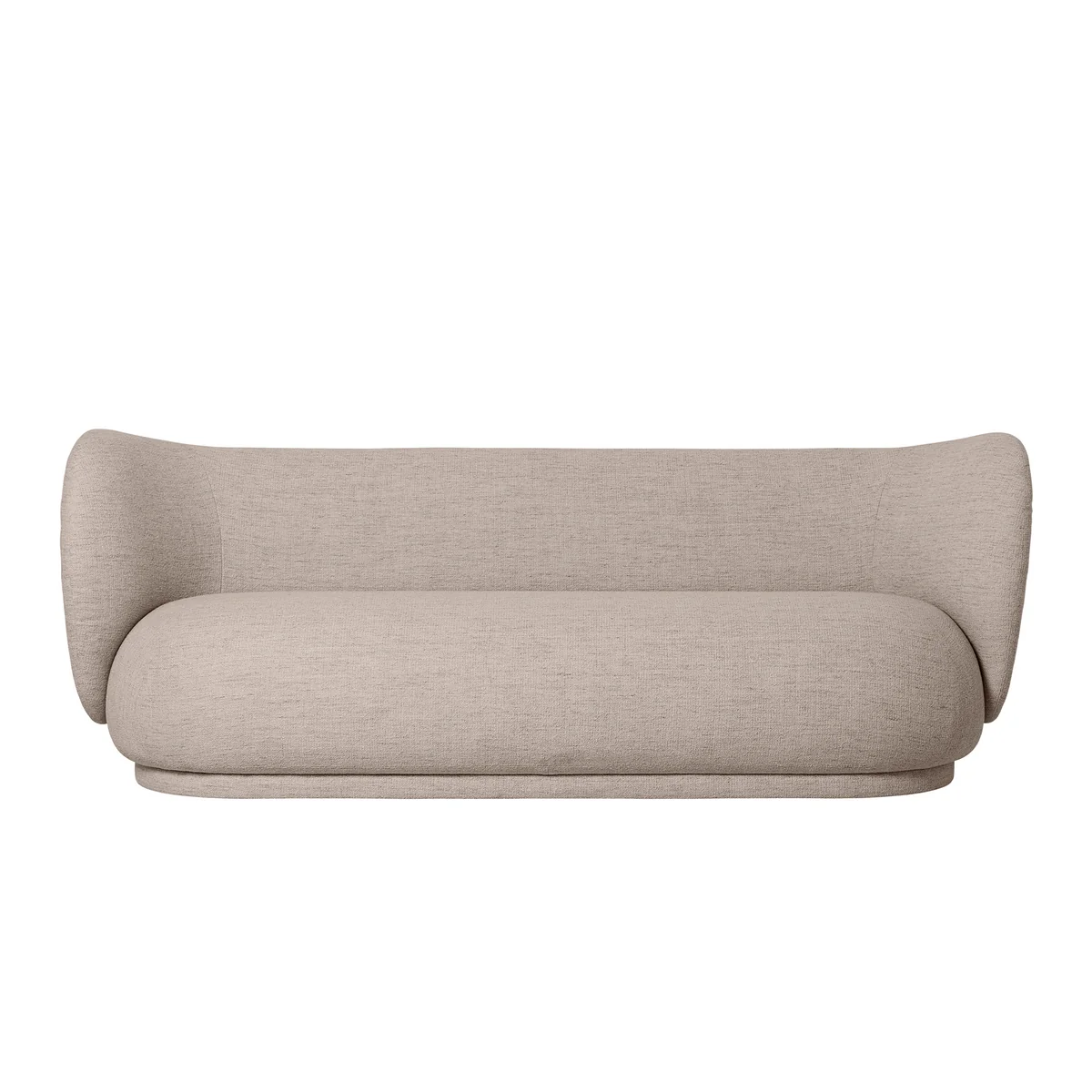 Das Rico Sofa von Ferm Living zeichnet sich durch seine üppige Polsterung aus, die zum Entspannen einlädt. Seine leicht gewölbte Rückenlehne, die fließend in die Armlehnen übergeht, scheint den Nutzer sanft zu umschließen und sorgt für einen gemütlichen Ausdruck. Dieser wird zusätzlich durch die tief gezogene Sitzfläche verstärkt. Ganz ohne Beine kommt das Sofa aus und besitzt stattdessen eine voluminöse Polsterung bis zum Boden.