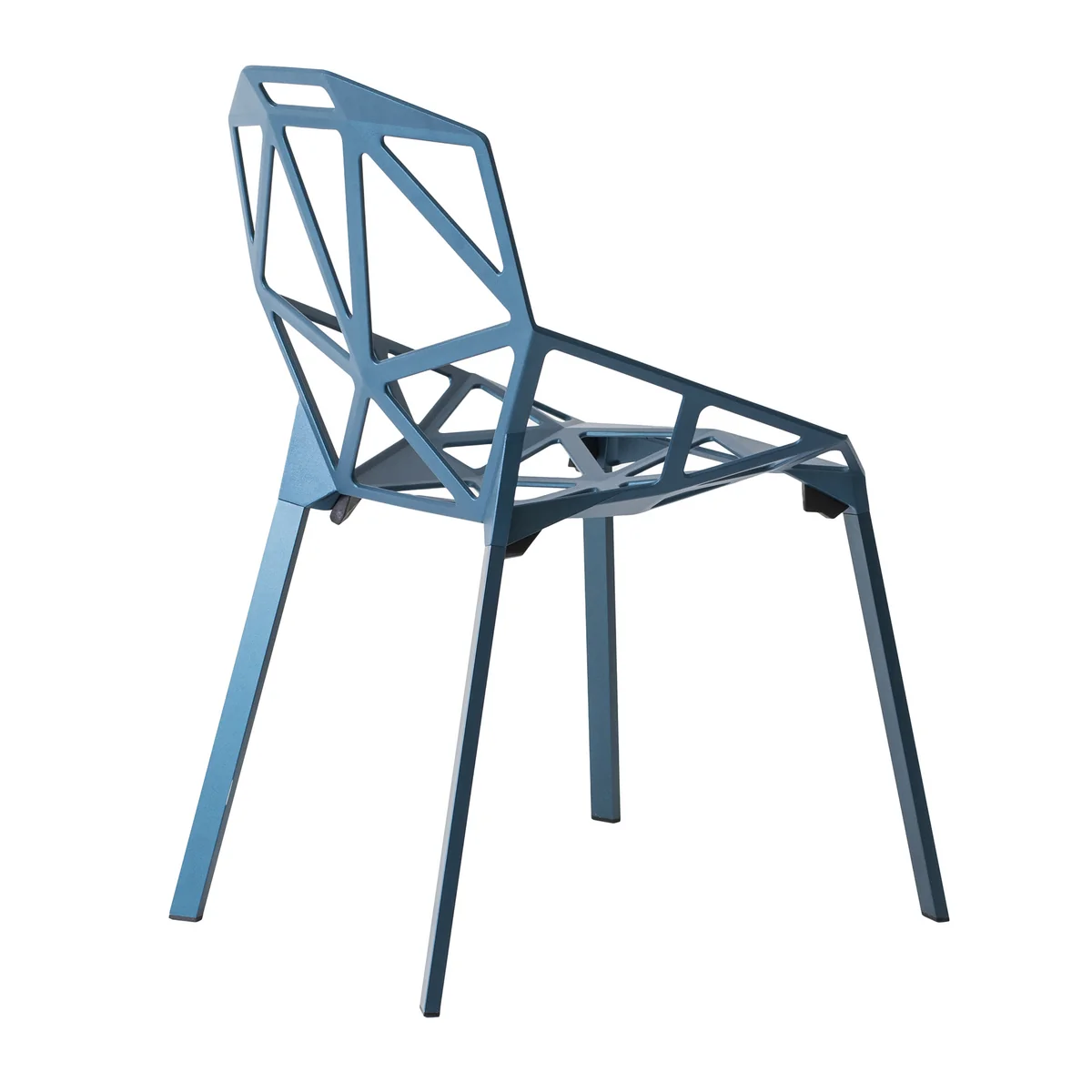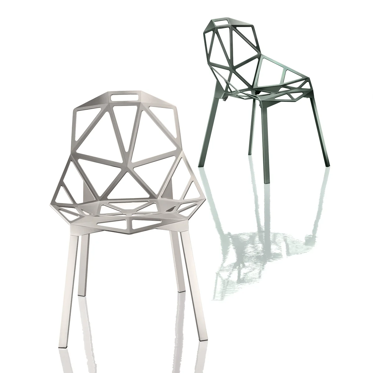 Chair One ist ein stapelbarer Ganzmetallstuhl (bis zu 8 Stück übereinander), den es in verschiedenen Farbvarianten gibt. Zusätzlich (und nicht im Lieferumfang enthalten) sind für den Chair One Sitzkissen aus Textilgewebe oder Leder erhältlich.