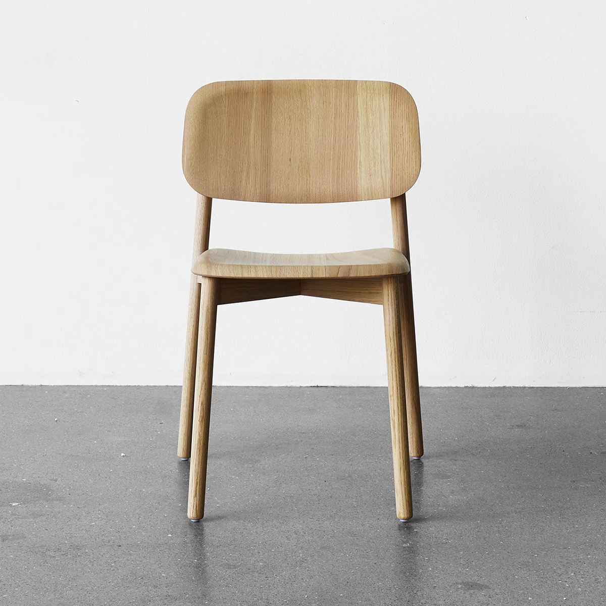 Aufgrund seines geringen Gewichts und der Stapelbarkeit eignet sich der Stuhl nicht nur für den privaten Gebrauch, sondern macht zudem in Schulen, Kantinen oder Konferenzräumen eine gute Figur. Erhältlich ist der Stuhl in einer matt lackierten Eichenversion mit Holzgestell, sowie als dunkel lackiertes Modell mit Stahlgestell.