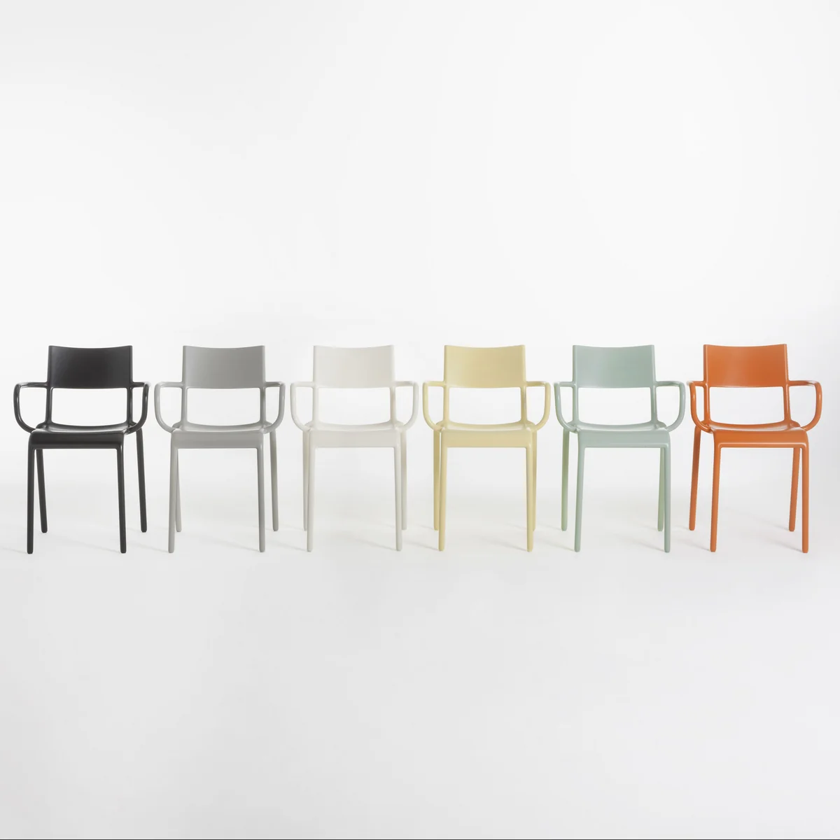 Philippe Starck Anliegen mit der Generic Serie für Kartell war es, zu der wesentlichen Form von Möbelstücken zurückkommen. Also schuf er generische Ideotypen an Stühlen und Tischen für Gemeinschaftsbereiche, für Büros ebenso wie für Freizeitbereiche.